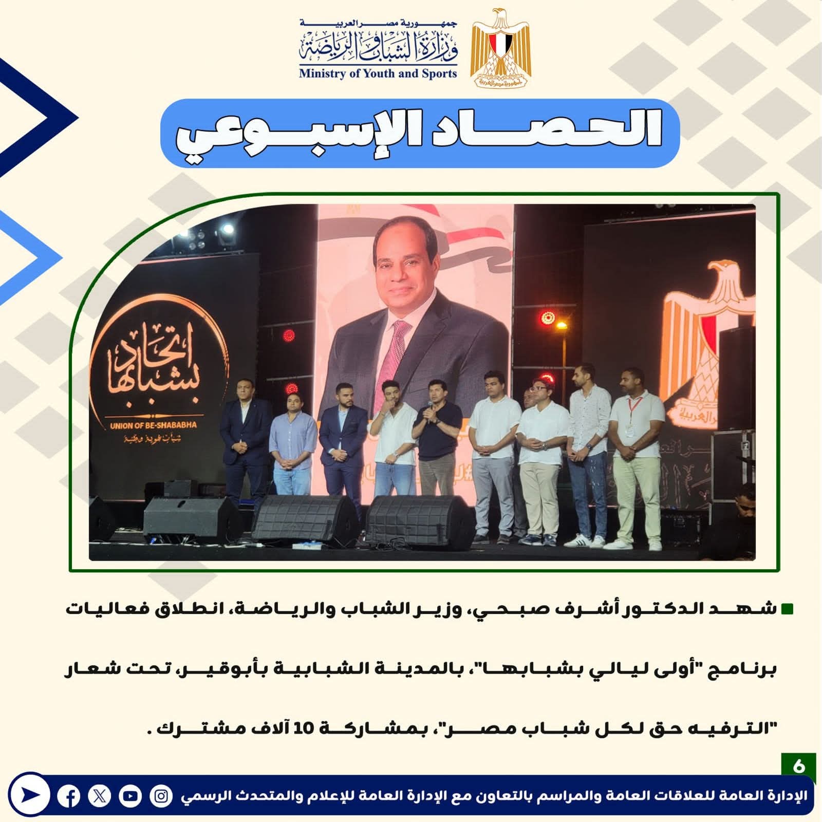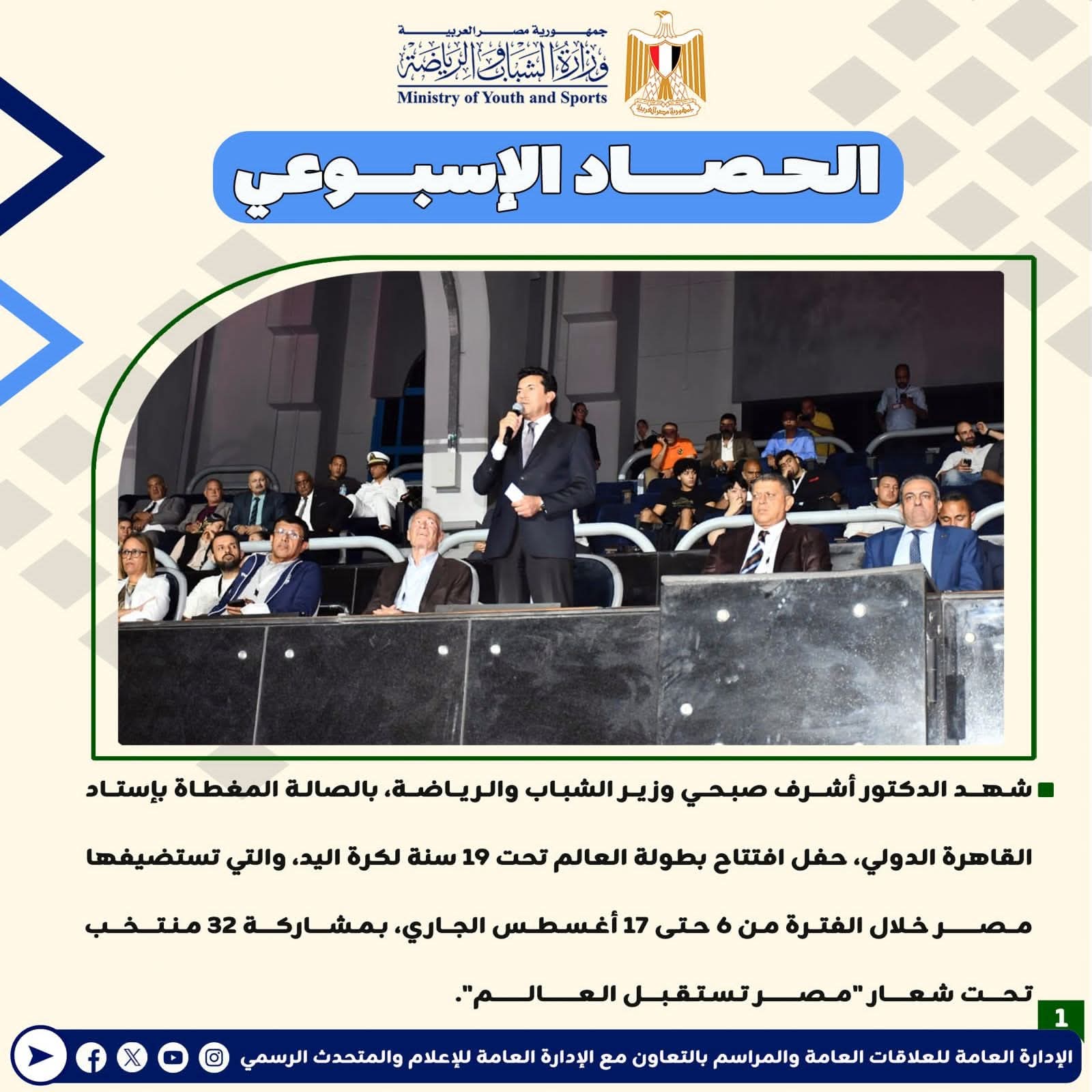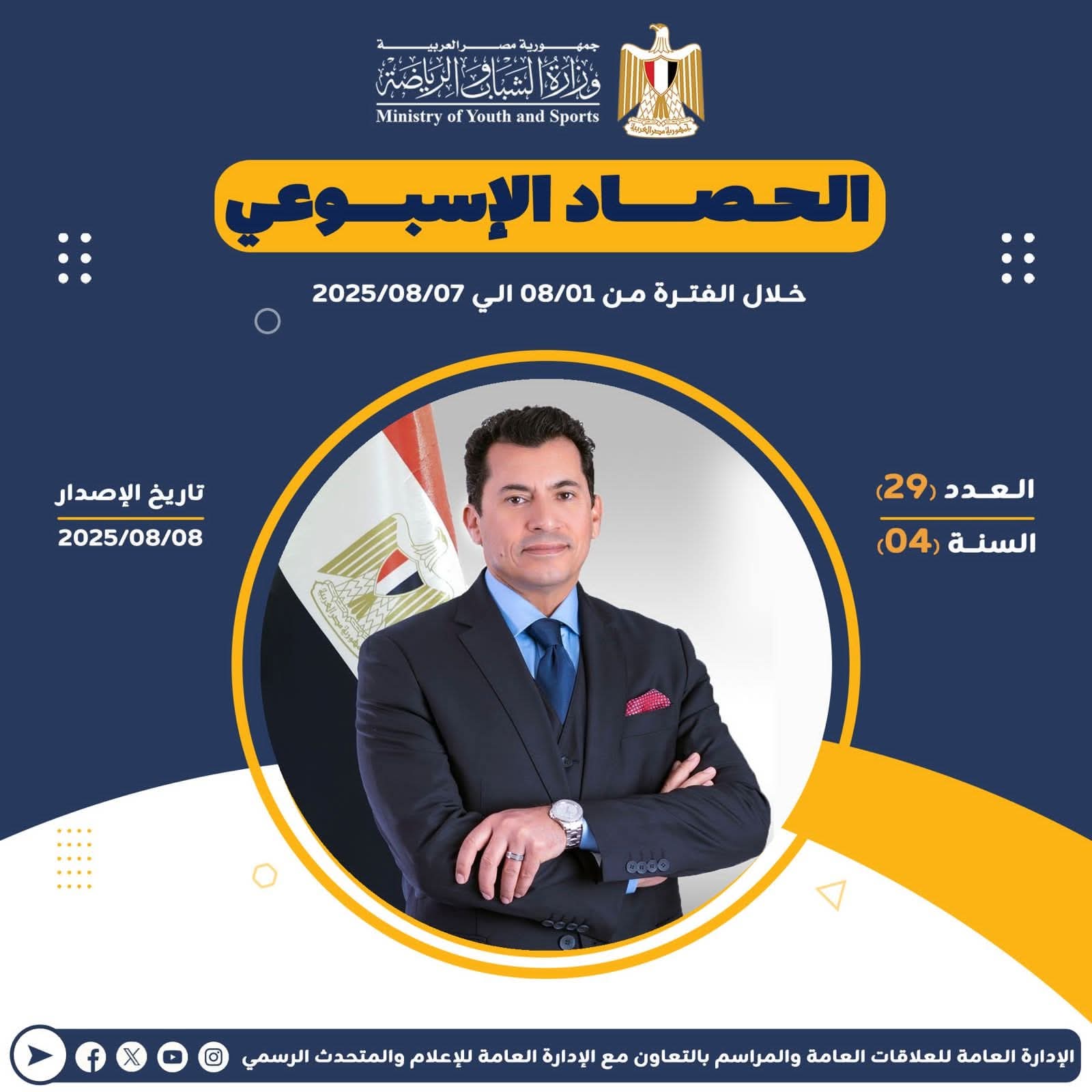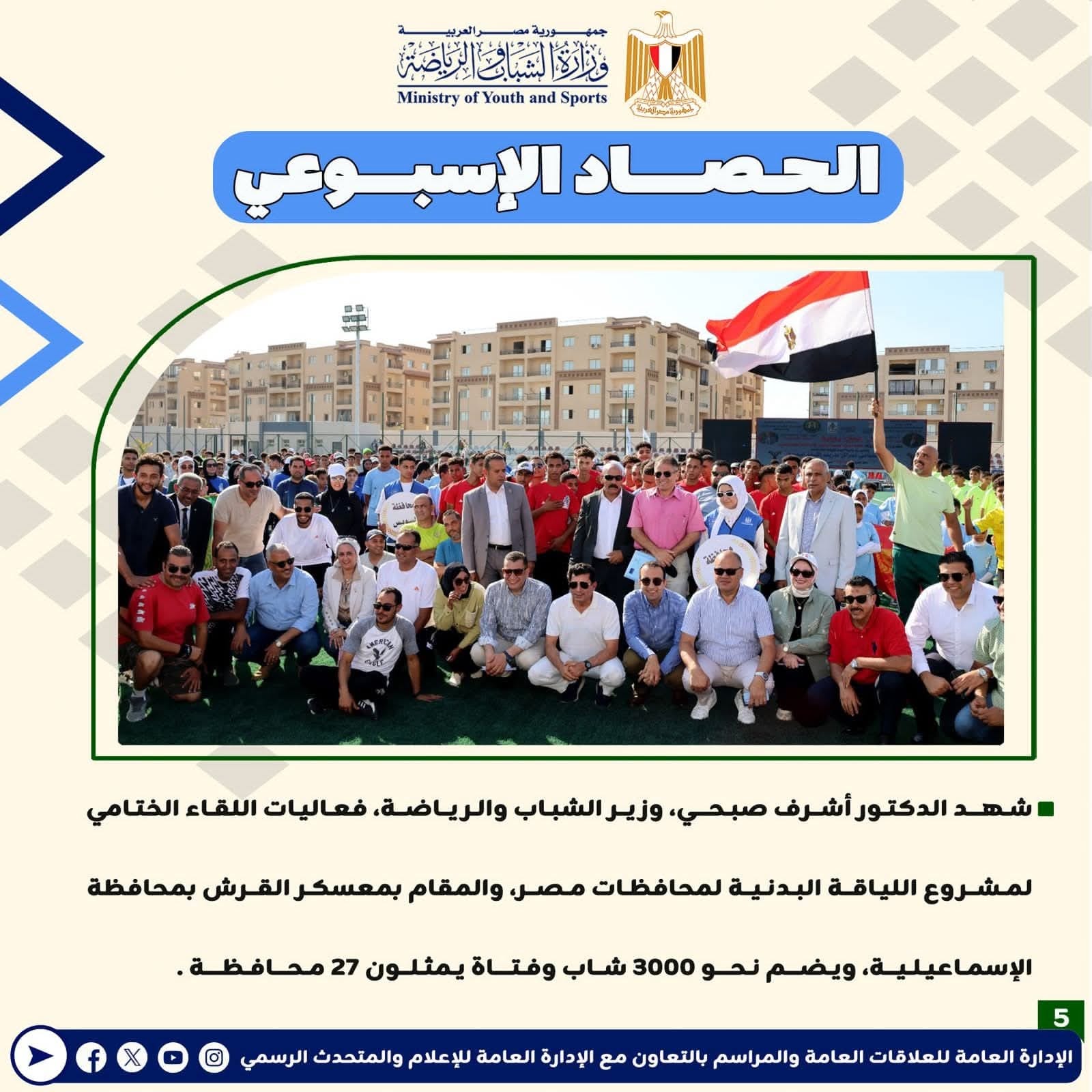 وزارة الشباب والرياضة تصدر حصادها الأسبوعي لأهم الأنشطة والفعاليات.. (إنفوجراف)