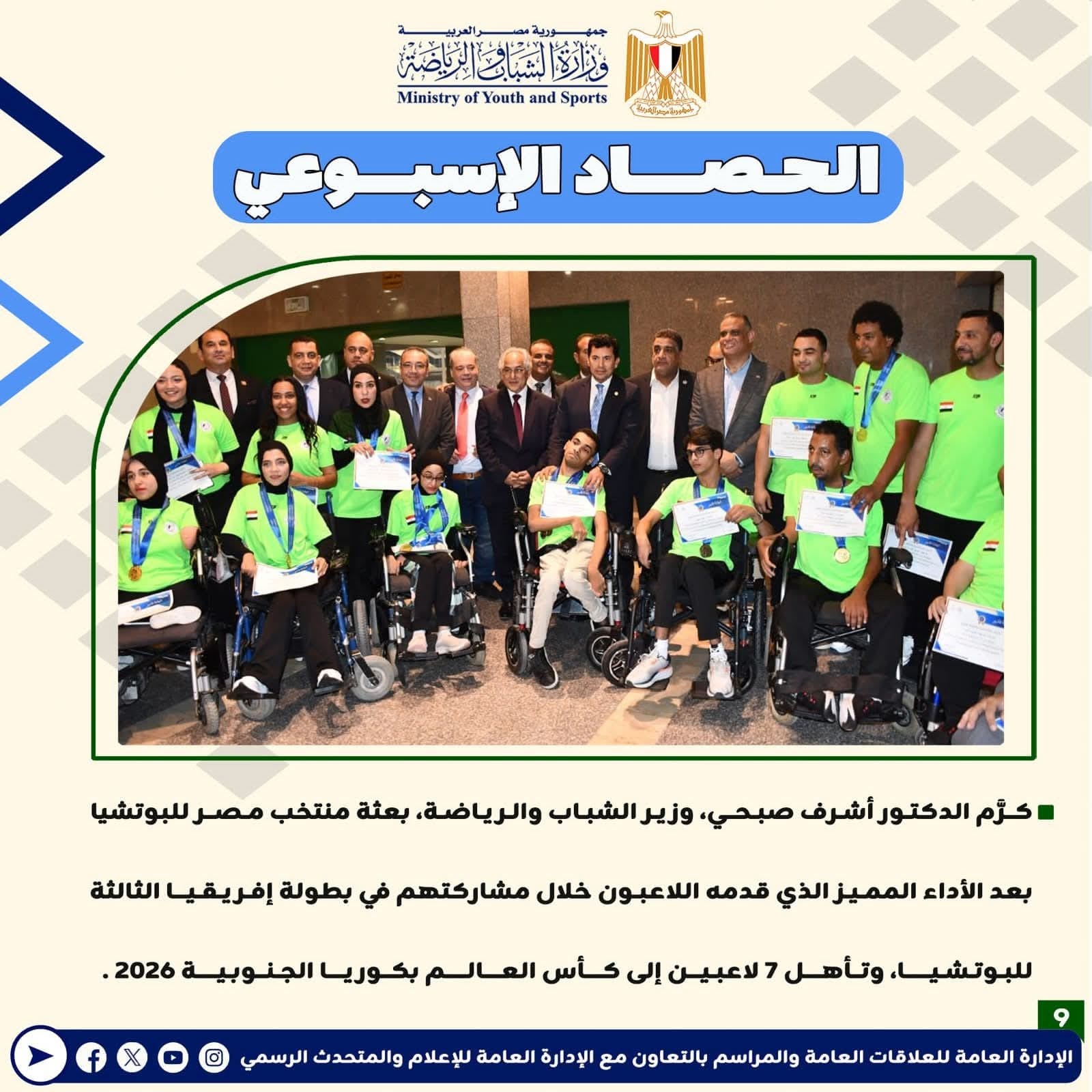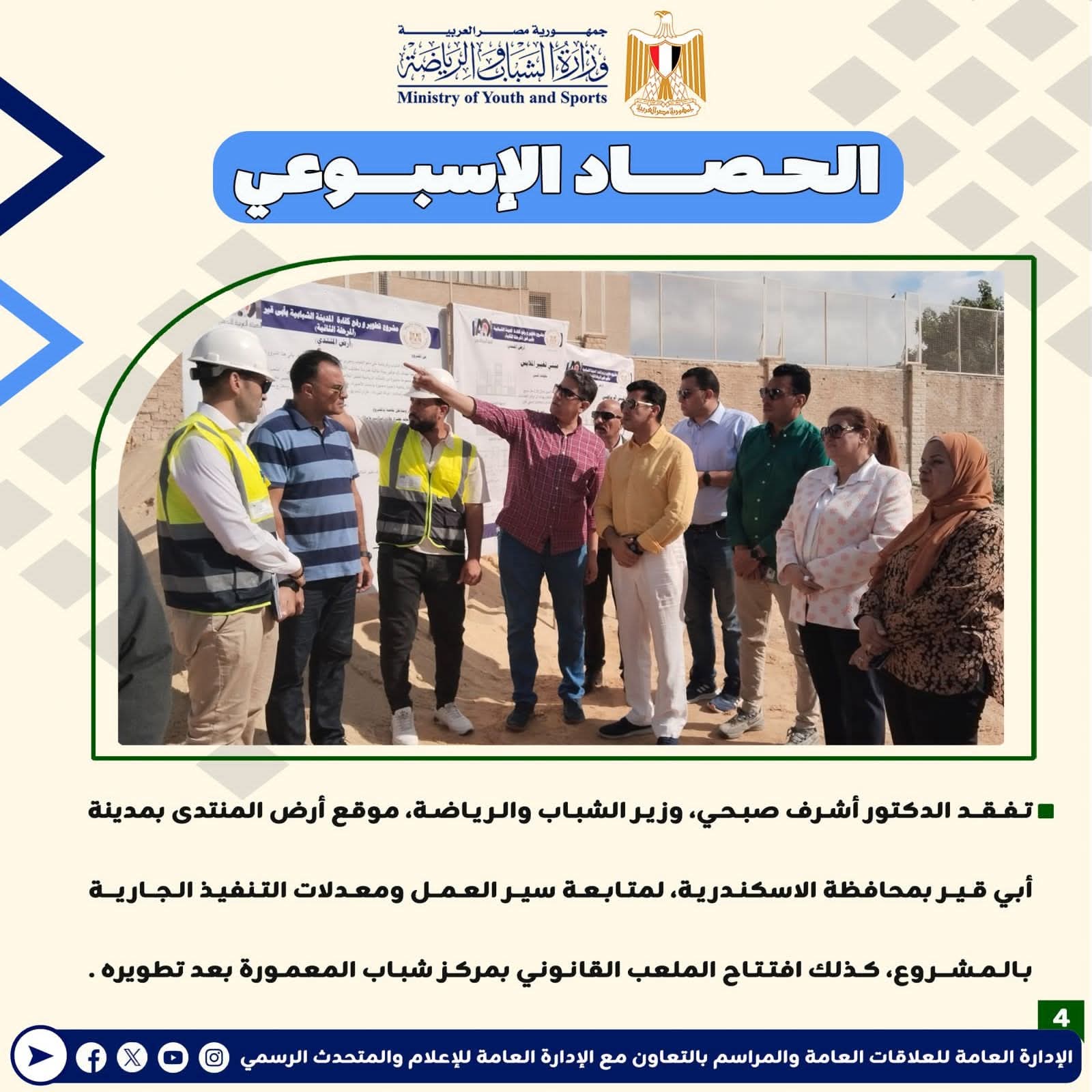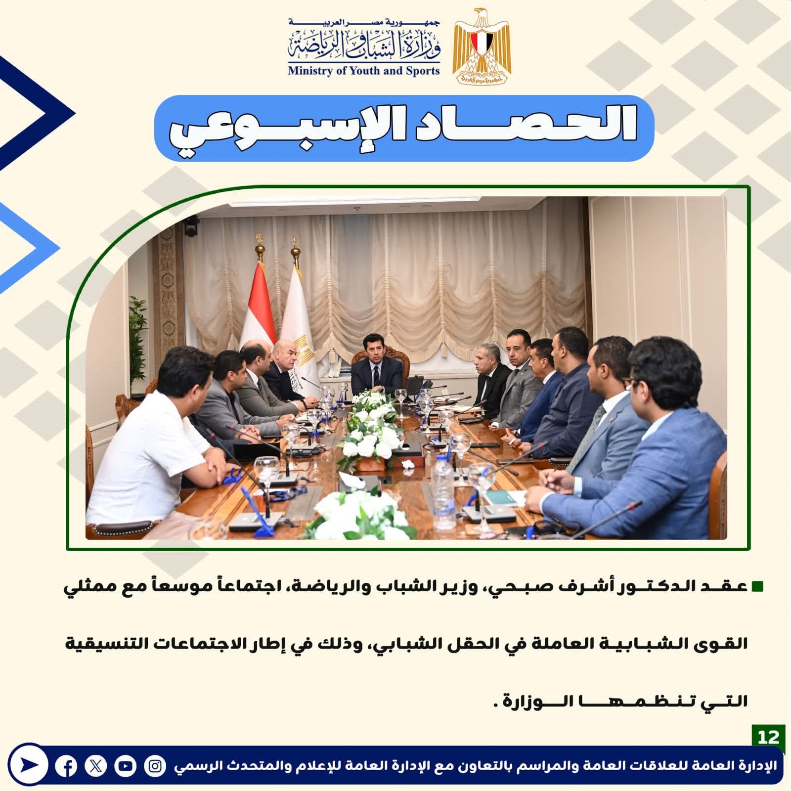 وزارة الشباب والرياضة تصدر حصادها الأسبوعي لأهم الأنشطة والفعاليات.. (إنفوجراف)