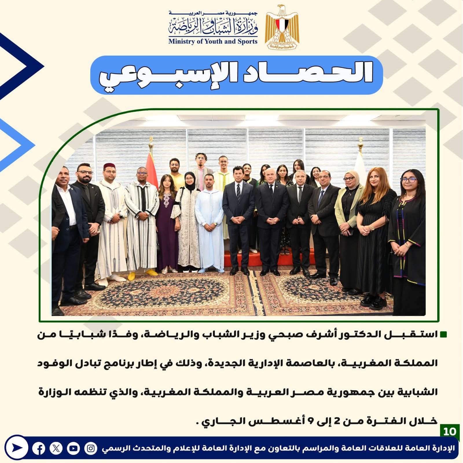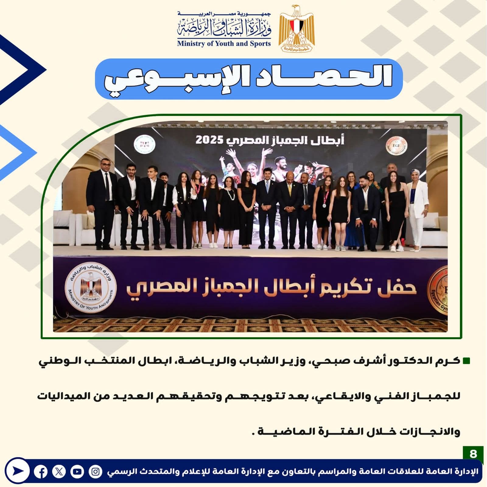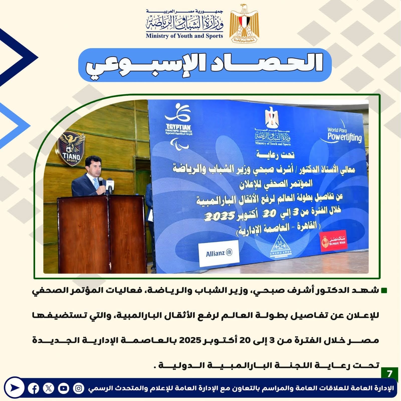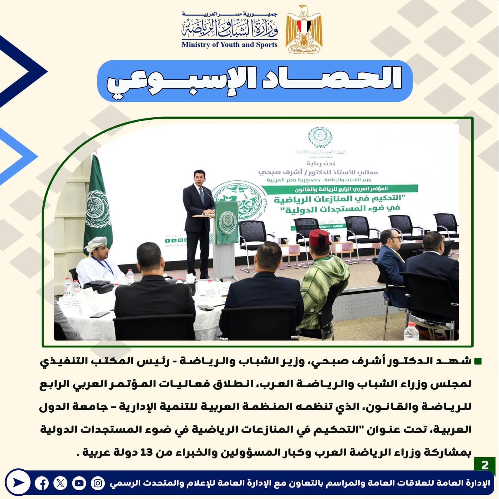 وزارة الشباب والرياضة تصدر حصادها الأسبوعي لأهم الأنشطة والفعاليات.. (إنفوجراف)