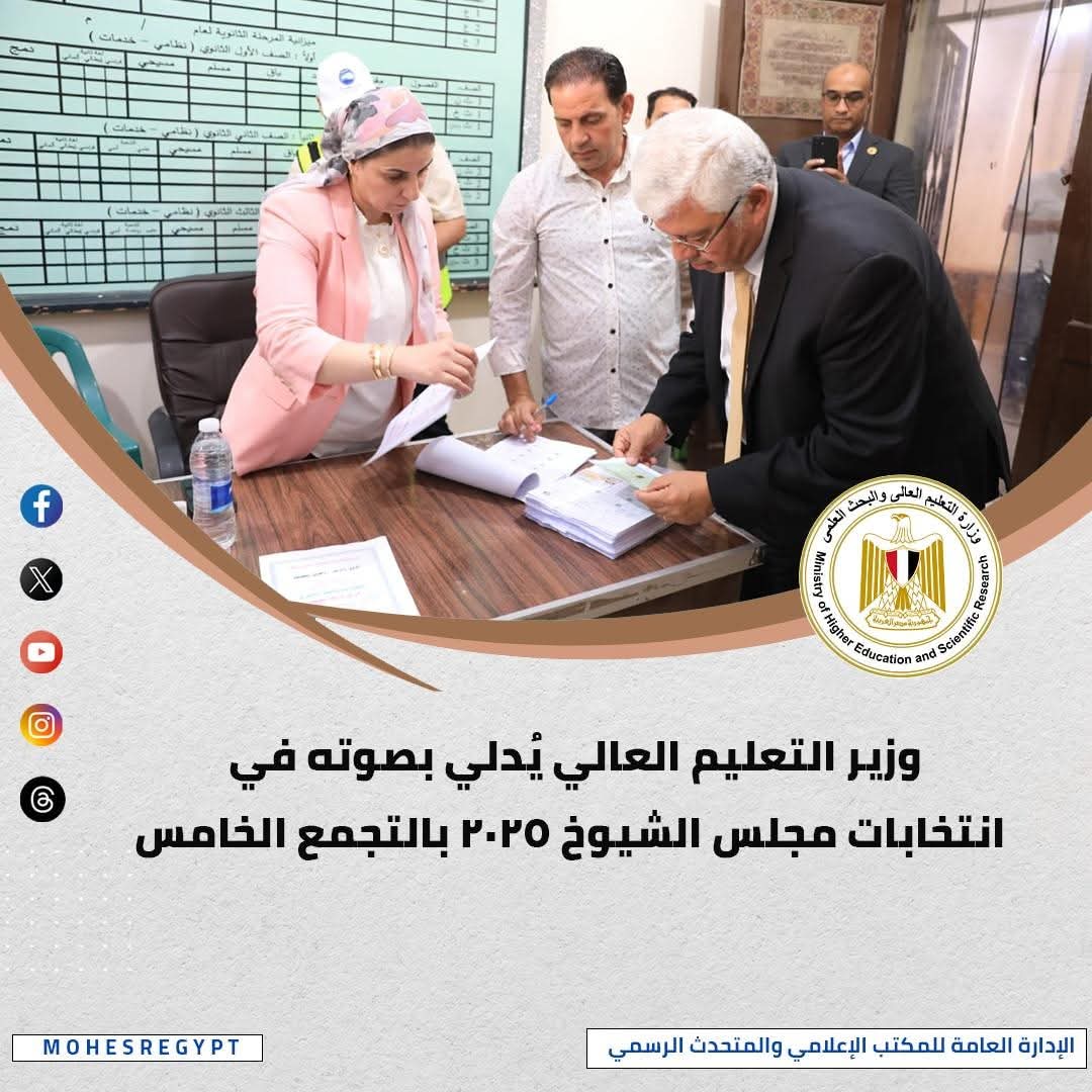 أدلى الدكتور أيمن عاشور، وزير التعليم العالي والبحث العلمي، بصوته في انتخابات مجلس الشيوخ ٢٠٢٥، وعقب الإدلاء بصوته، دعا الدكتور أيمن عاشور جموع الناخبين، ولاسيما شباب الجامعات، إلى المشاركة الإيجابية في هذا الاستحقاق الدستوري المهم، مؤكدًا أن التصويت في الانتخابات يُعد حقًا دستوريًا وواجبًا وطنيًا على كل مواطن حريص على مستقبل وطنه، ومساهمًا في دعم مسيرة التنمية والبناء التي تشهدها الدولة المصرية.