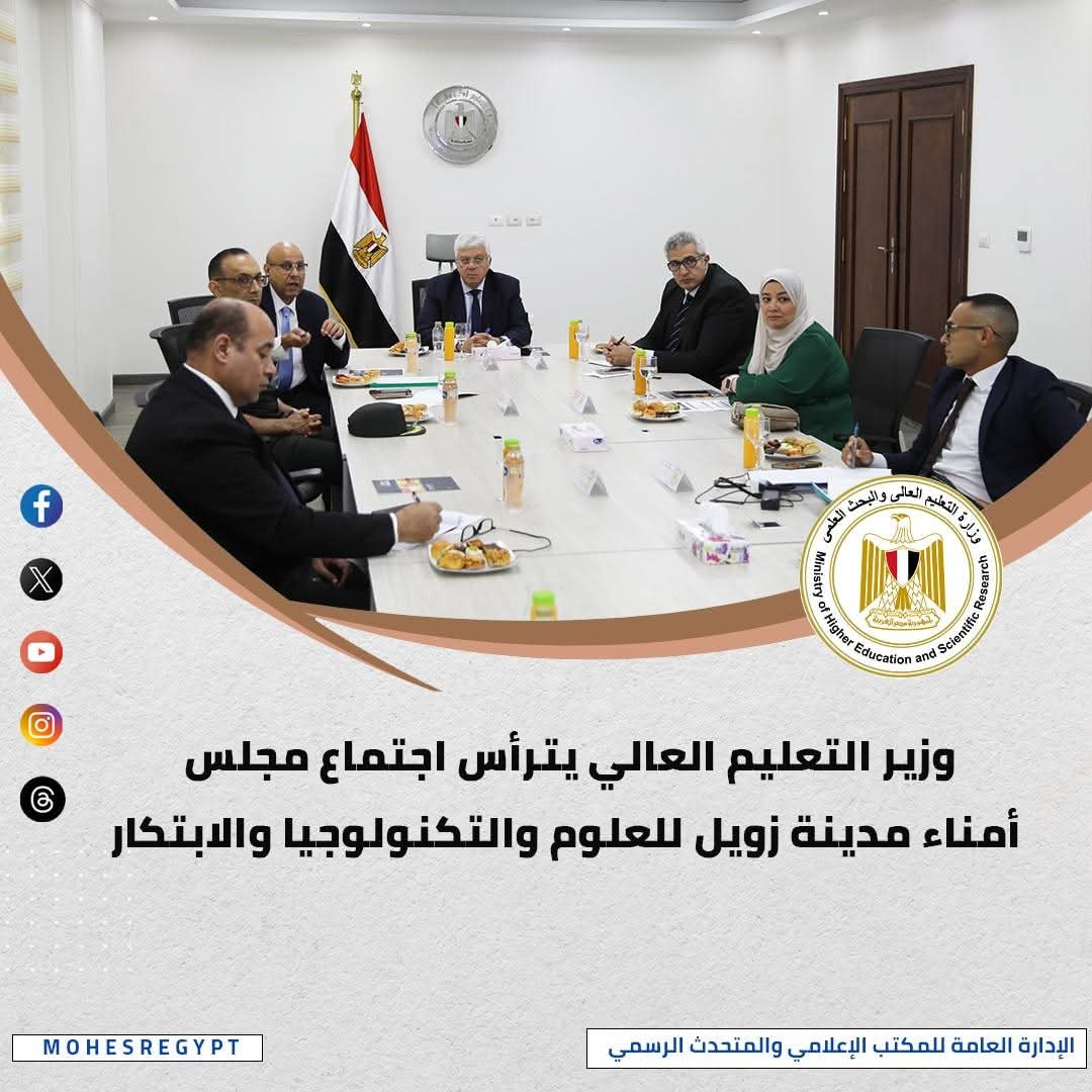 ترأس الدكتور أيمن عاشور وزير التعليم العالي والبحث العلمي، اجتماع مجلس أمناء مدينة زويل للعلوم والتكنولوجيا والابتكار، وأكد الدكتور أيمن عاشور أن مدينة زويل للعلوم والتكنولوجيا والابتكار، حظت بدعم غير مسبوق من قبل السيد الرئيس عبدالفتاح السيسي رئيس الجمهورية، وهو ما ساهم في بناء وتطوير المدينة وتزويدها بأحدث الوسائط التكنولوجية والبنية التحتية والمعلوماتية المتطورة، لكي تصبح المدينة صرحًا تعليميًا عالميًا، مشيرًا إلى أنه تم تحويل حلم الراحل الدكتور أحمد زويل إلى حقيقة، وأشار الوزير إلى أن المدينة تضم أعضاء هيئة التدريس يتمتعون بخبرات أكاديمية كبيرة في البحث والتدريس بالجامعات الدولية الكُبرى والمعاهد البحثية المُتميزة، لافتًا إلى ضرورة الاستفادة من المخرجات البحثية وتحويلها إلى منتجات تسهم في خدمة الاقتصاد الوطني، بالإضافة إلى الاهتمام بنشر ثقافة الابتكار وريادة الأعمال، وربط الأبحاث العلمية بالخطط التنموية والاحتياجات المجتمعية.