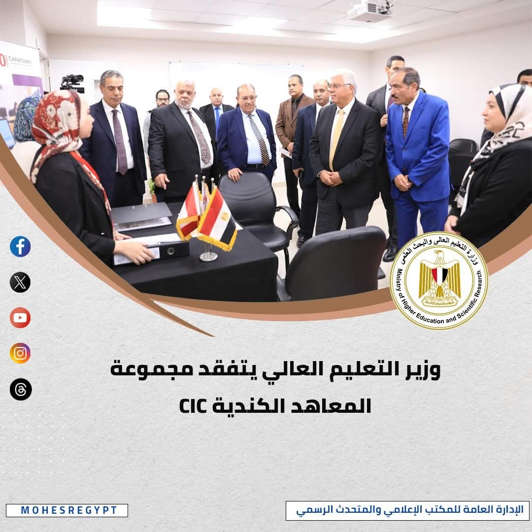 قام الدكتور أيمن عاشور، وزير التعليم العالي والبحث العلمي، بزيارة لمجموعة المعاهد الكندية (CIC) بالتجمع الخامس، وذلك على هامش انعقاد اجتماع مجلس شؤون المعاهد العليا الخاصة، بدأت الزيارة بتفقد الوزير لمنشآت المعاهد الكندية، حيث شملت الجولة قاعات الدراسة، معامل الحاسب الآلي، مكتب شؤون الطلاب، واستوديوهات الإعلام بـCIC، كما اطلع على المشاريع الابتكارية للطلاب، وفي مقدمتها مشروع تصميم سيارة سباقات من ابتكار طلاب هندسة CIC، وخلال الجولة، التقى الدكتور أيمن عاشور بالطلاب وأعضاء هيئة التدريس، واستمع إلى آرائهم وانطباعاتهم حول الدراسة الأكاديمية والخدمات التعليمية المقدمة.