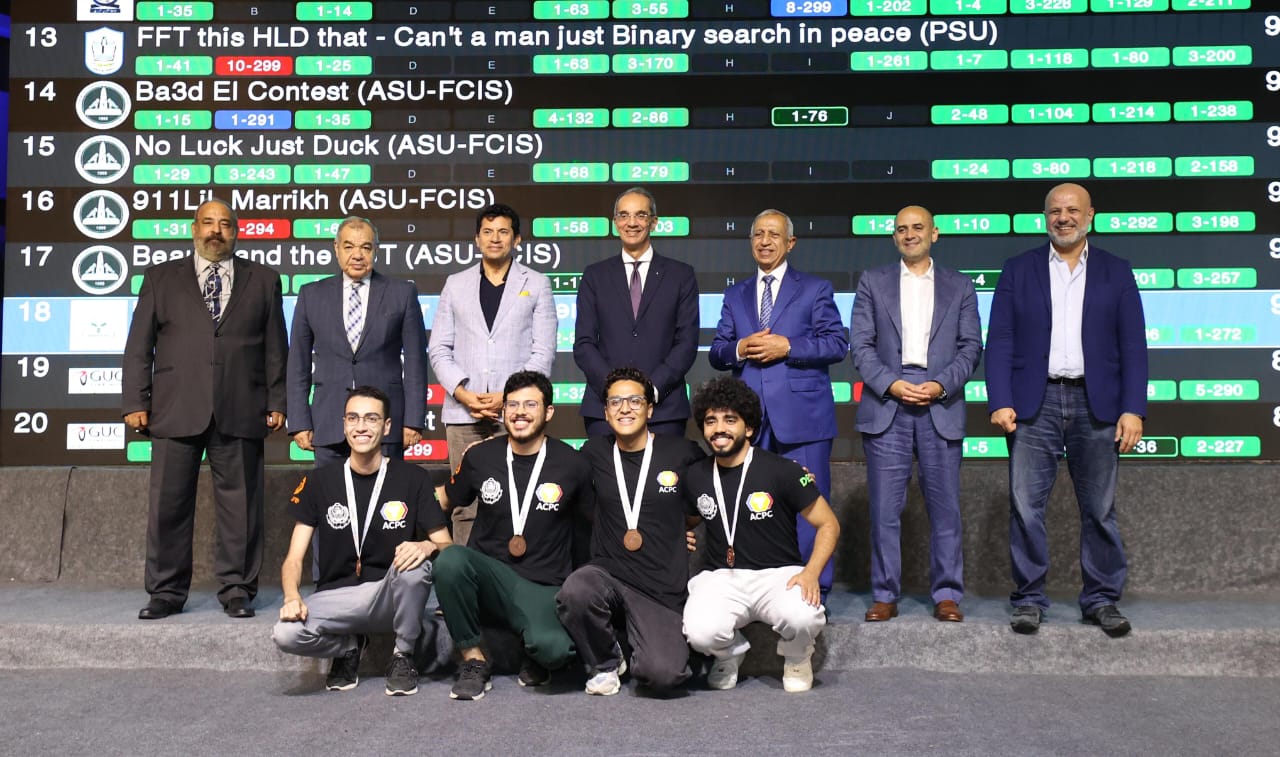 شهد الدكتور عمرو طلعت وزير الاتصالات وتكنولوجيا المعلومات، والدكتور أشرف صبحى وزير الشباب والرياضة، والدكتور إسماعيل عبد الغفار رئيس الاكاديمية العربية للعلوم والتكنولوجيا والنقل البحرى حفل ختام المسابقة المصرية للبرمجة لشباب الجامعات (ECPC)، التى استضافتها الأكاديمية العربية للعلوم والتكنولوجيا والنقل البحرى بالتعاون مع وزارتى الاتصالات وتكنولوجيا المعلومات، والتعليم العالى والبحث العلمى؛ حيث تهدف المسابقة إلى تنمية مهارات البرمجة لدى الشباب المصرى وتأهيلهم للمنافسة فى المحافل الدولية.