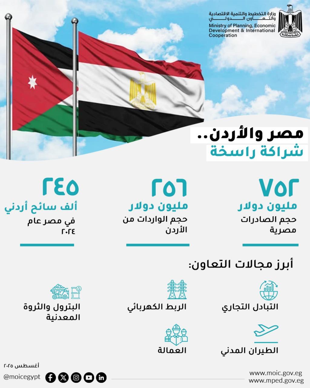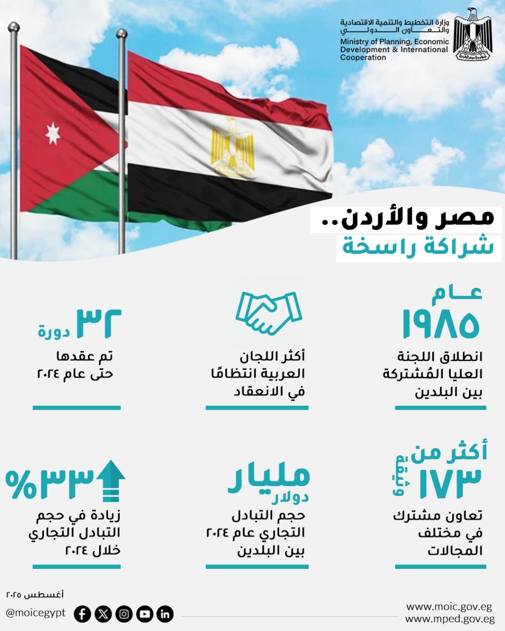 وزارة التخطيط تصدر تقريرا حول تطورات علاقات الشراكة الاستراتيجية بين مصر والأردن
