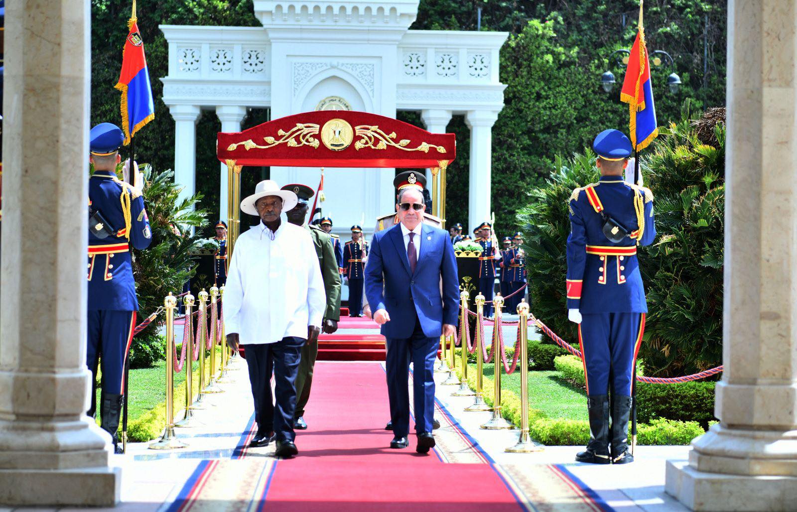 وعُقدت مراسم الاستقبال الرسمية، وتم عزف السلام الوطني لكل من جمهورية مصر العربية وجمهورية أوغندا.