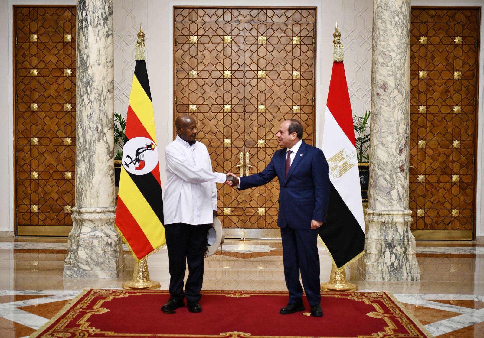 وأضاف السفير محمد الشناوي، المتحدث الرسمي، أن الرئيسين شهدا التوقيع على عدد من مذكرات التفاهم في مجالات التعاون الفني في قطاع إدارة الموارد المائية، والتعاون الزراعي والغذائي، والاستثمار، والإعفاء المتبادل من تأشيرات الدخول لحاملي جوازات السفر الرسمية، والتعاون الدبلوماسي لدعم إنشاء معهد دبلوماسي أوغندي.