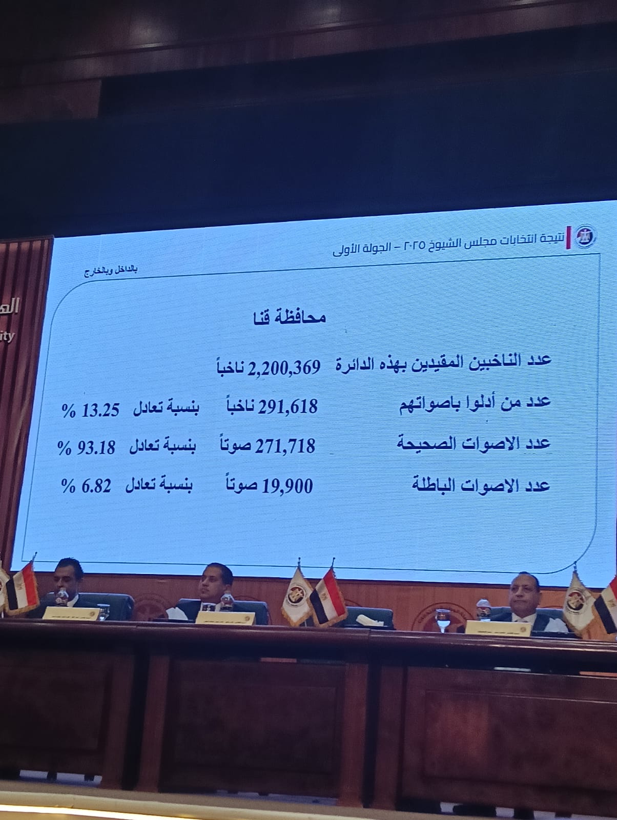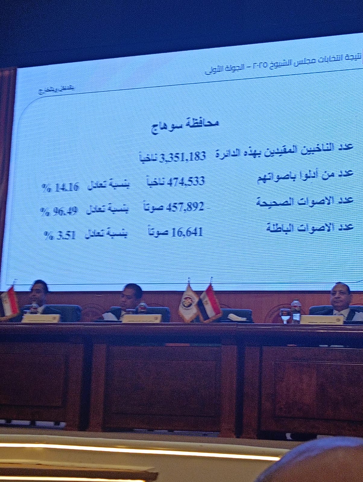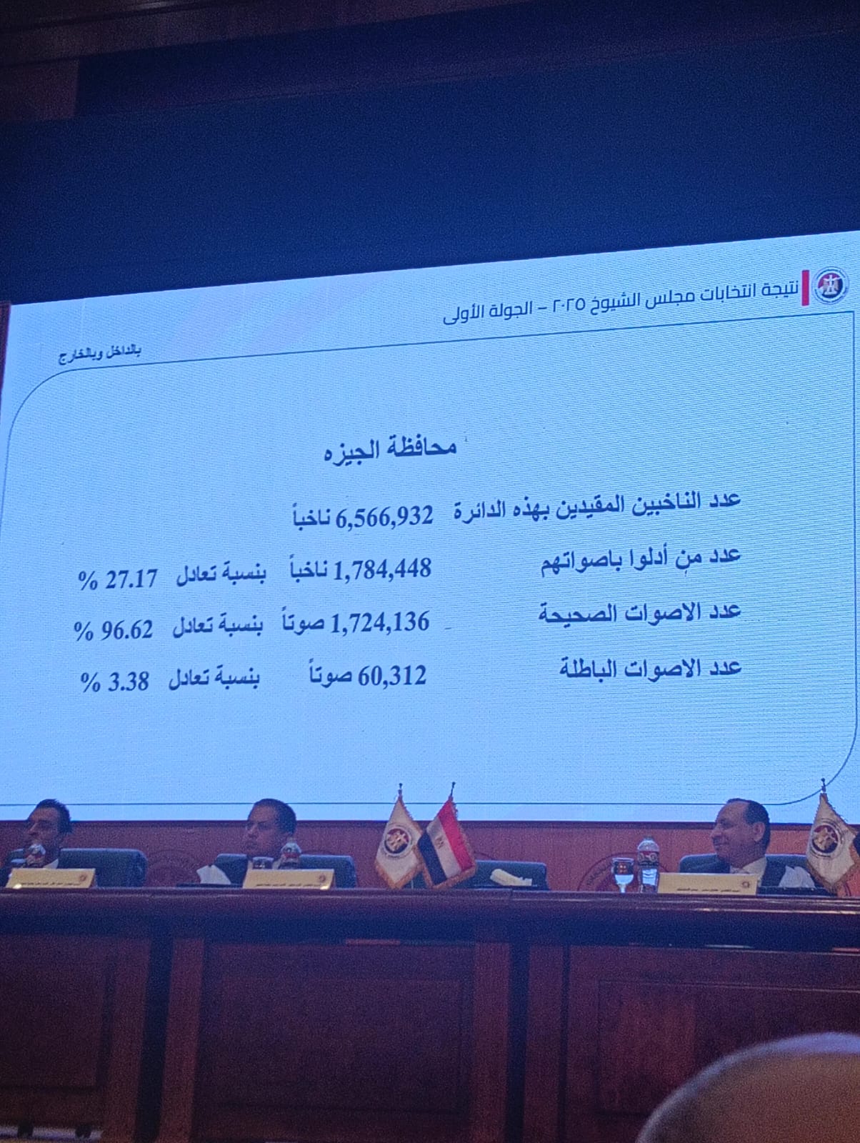 أعلن القاضي حازم بدوي رئيس مجلس إدارة الهيئة الوطنية للانتخابات ونائب رئيس محكمة النقض، النتيجة الرسمية للجولة الأولى من انتخابات مجلس الشيوخ 2025، عدد المواطنين المقيدين بقاعدة بيانات الناخبين، والتي وصلت نحو 69 مليونا و333 ألفا و138 ناخبًا.