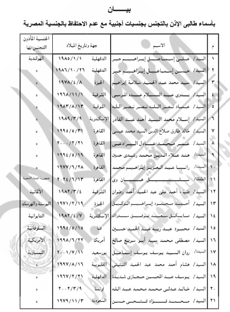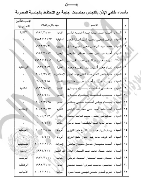 حصول 42 شخصا على جنسيات أجنبية.. (كشوفات بالأسماء)
