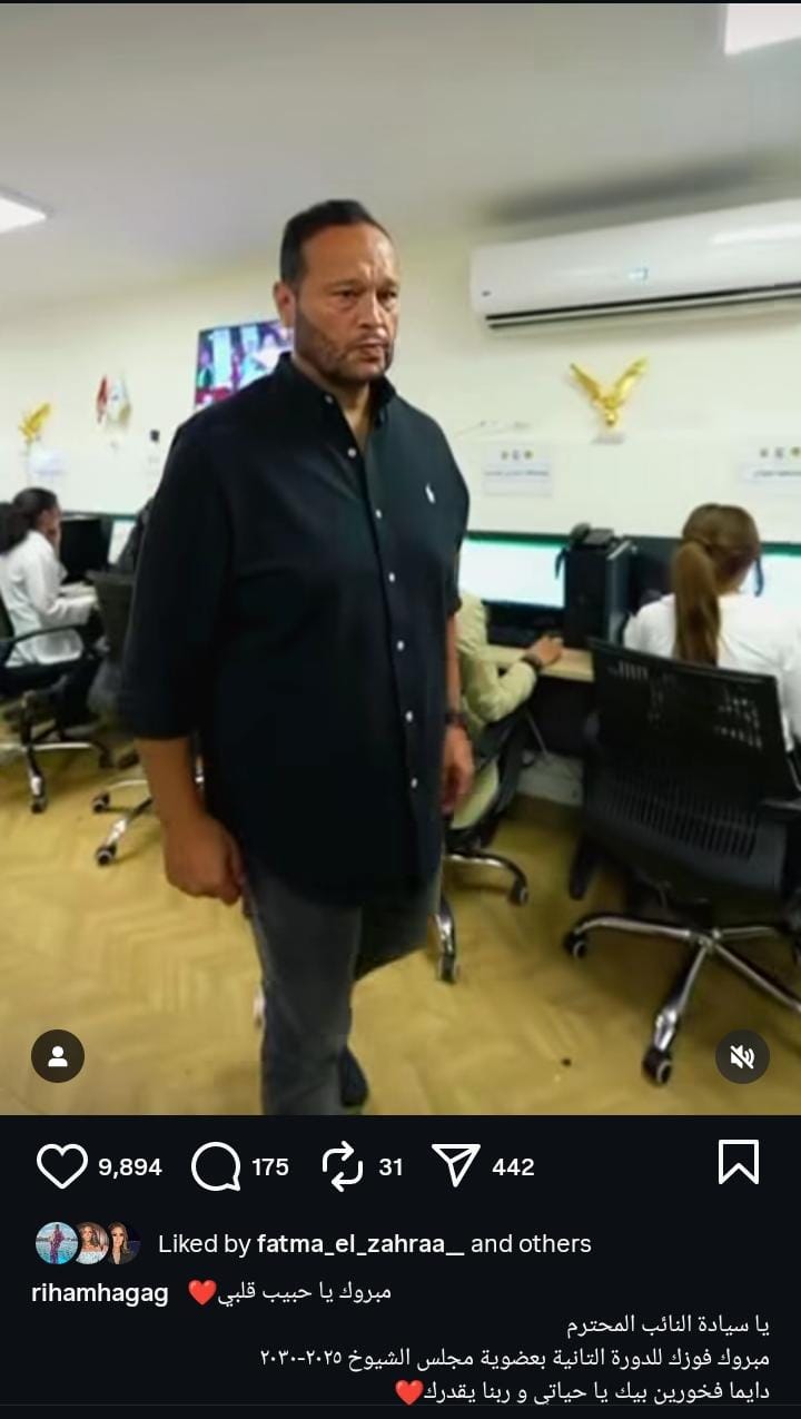 ووجهت ريهام حجاج لزوجها رسالة رومانسية، حيث نشرت فيديو له من خلال حسابها الرسمي عبر موقع تبادل الصور والفيديوهات القصيرة "إنستجرام"، وكتبت: "مبروك يا حبيب قلبي.. يا سيادة النائب المحترم.. مبروك فوزك للدورة الثانية بعضوية مجلس الشيوخ 2025ـ 2030".