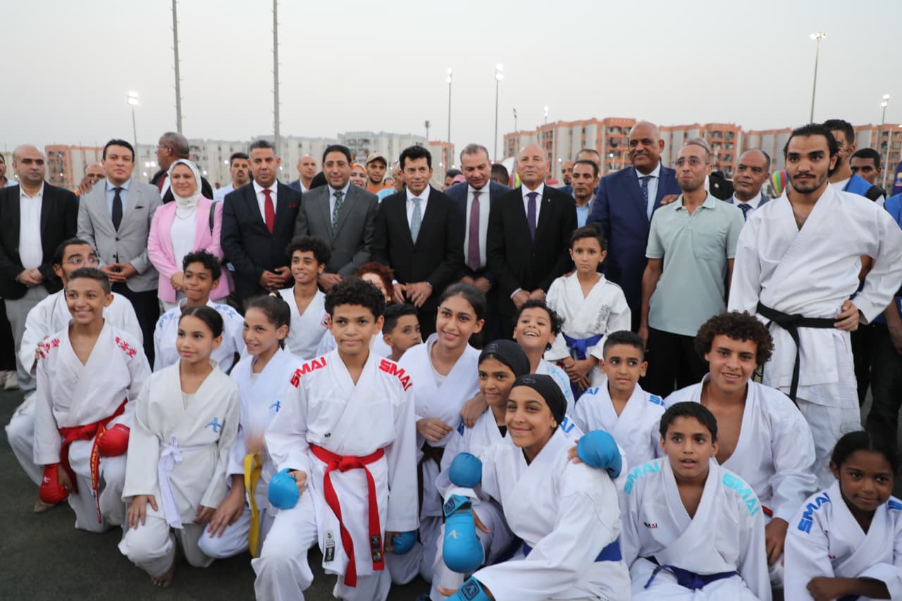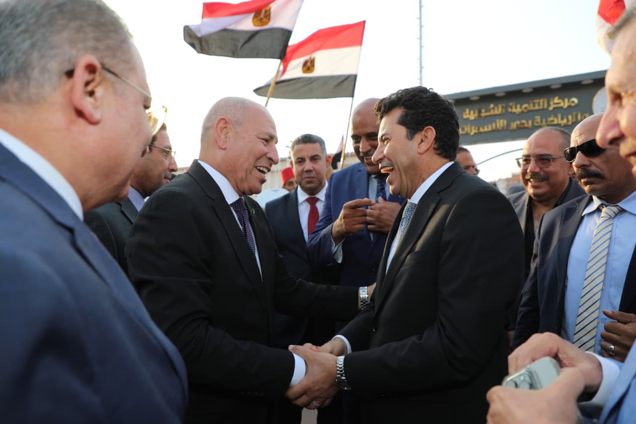 وزير الرياضة ومحافظ القاهرة ورئيس صندوق التنمية يفتتحوا حمام سباحة نصف اوليمبي