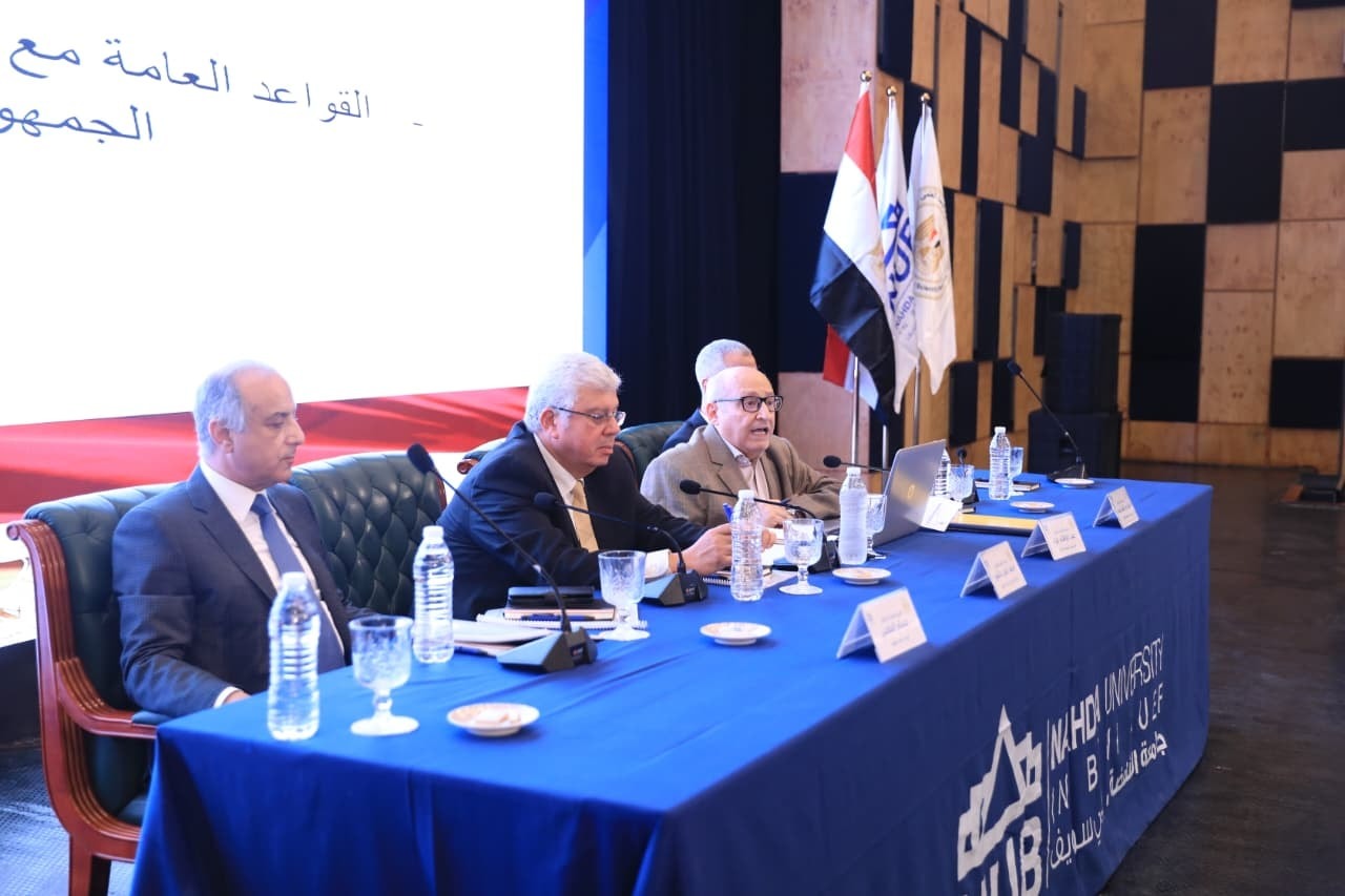 في بداية الاجتماع، قدم المجلس الشكر لأسرة جامعة النهضة برئاسة كل من د.حسام الملاحي رئيس الجامعة، وم.محمد الرشيدي رئيس مجلس أمناء الجامعة؛ لاستضافة اجتماع مجلس الجامعات الخاصة.