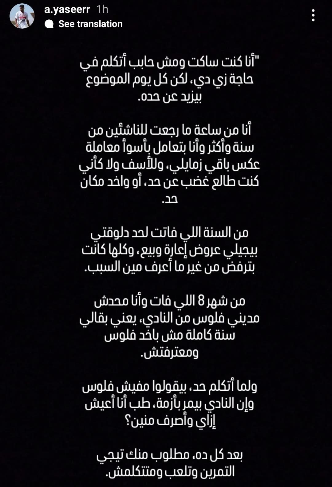 وكتب اللاعب، عبر حسابه الرسمي على موقع التواصل الاجتماعي "إنستجرام" : أنا كنت ساكت ومش حابب أتكلم في حاجة زي دي، لكن كل يوم الموضوع بيزيد عن حده.
