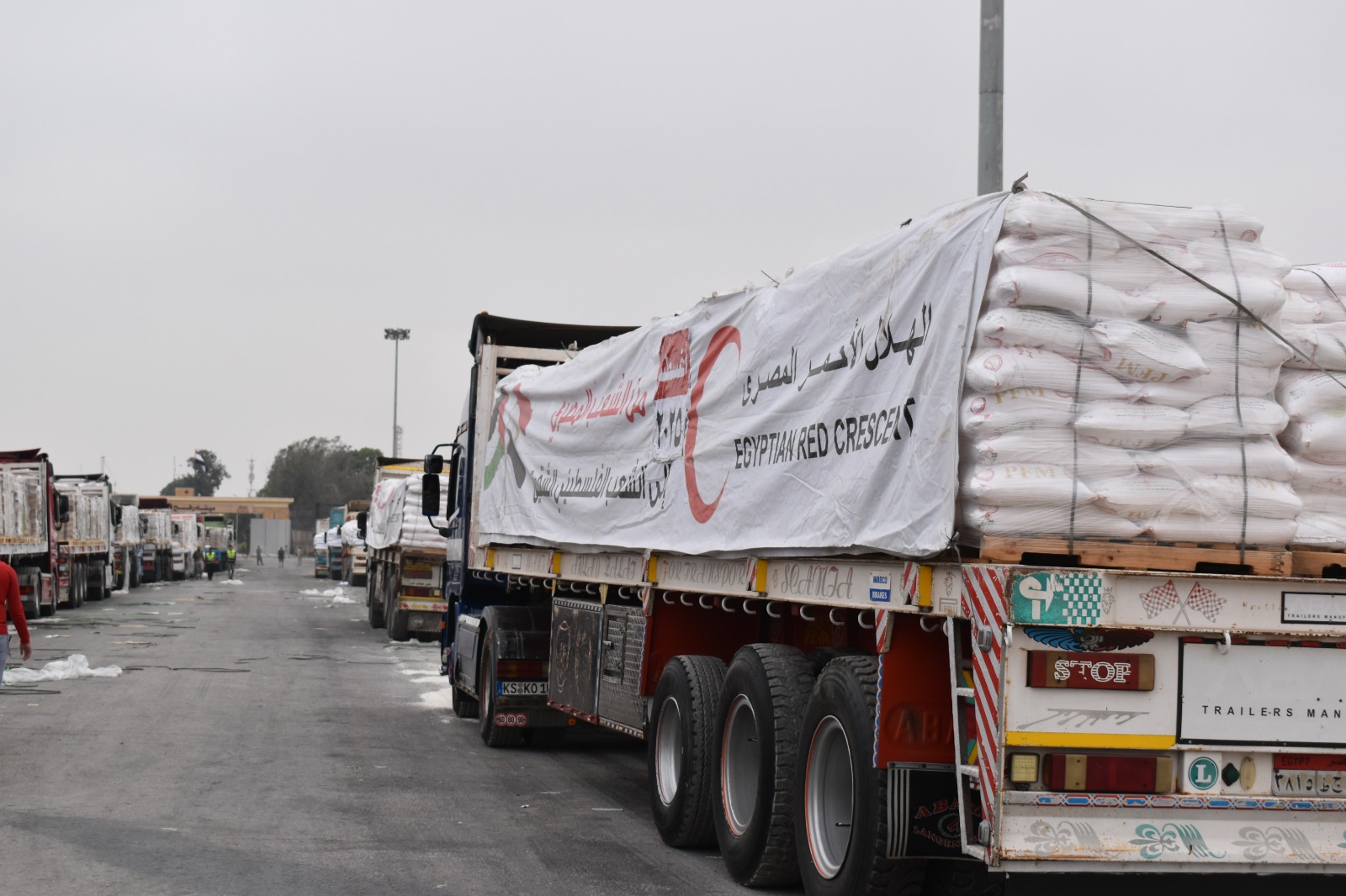 الهلال الأحمر المصري يدفع أكثر من 112 ألف سلة غذائية في قافلة "زاد العزة"