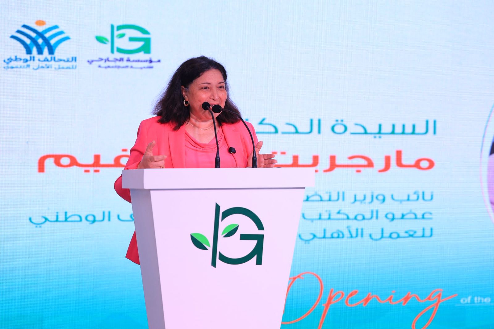 وأعربت المهندسة مرجريت صاروفيم نائبة وزيرة التضامن الاجتماعي عن سعادتها بالمشاركة في افتتاح المقر الرئيسي للمؤسسة، التي آمنت بمسؤولية العطاء والعمل التنموي، وحرصت على المشاركة الفاعلة كعضو في التحالف الوطني للعمل الأهلي بعدد من المبادرات التي تستهدف تنمية الإنسان.