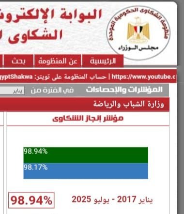 ويأتي هذا الإنجاز انعكاسًا للدعم والمتابعة المستمرة من وزير الشباب والرياضة، وتكامل الجهود بين الإدارة العامة لخدمة المواطنين بالإدارة المركزية لشؤون مكتب الوزير، وقيادات الوزارة، ومديري المديريات، ومسؤولي الربط الإلكتروني بإدارات ديوان عام الوزارة، ومديريات الشباب والرياضة بالمحافظات، إضافة إلى فريق العمل من الموظفين والمتطوعين الذين أسهموا بجهودهم في تحقيق هذا الأداء المتميز.