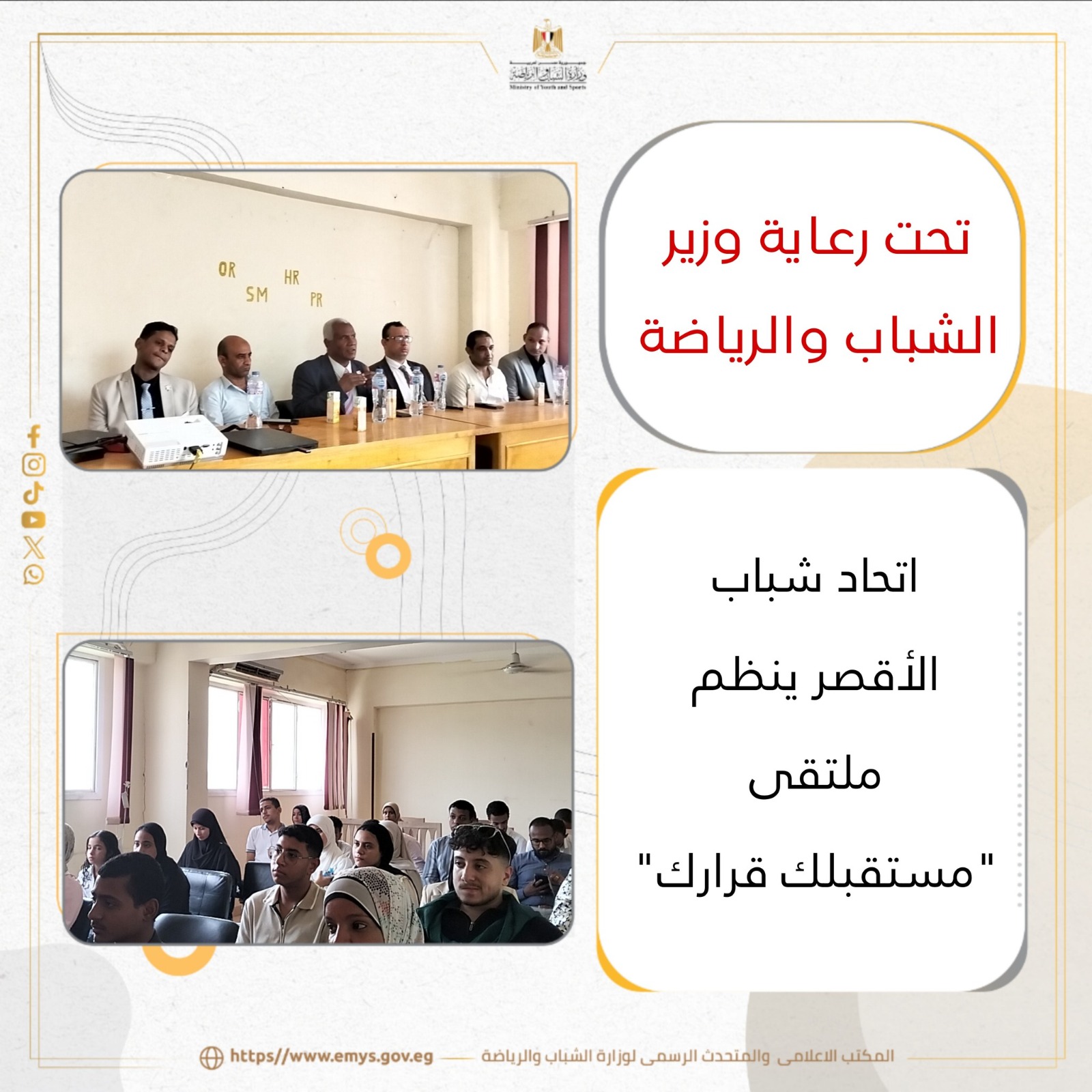 تحت رعاية وزير الرياضة.. اتحاد شباب الأقصر ينظم ملتقى "مستقبلك قرارك"