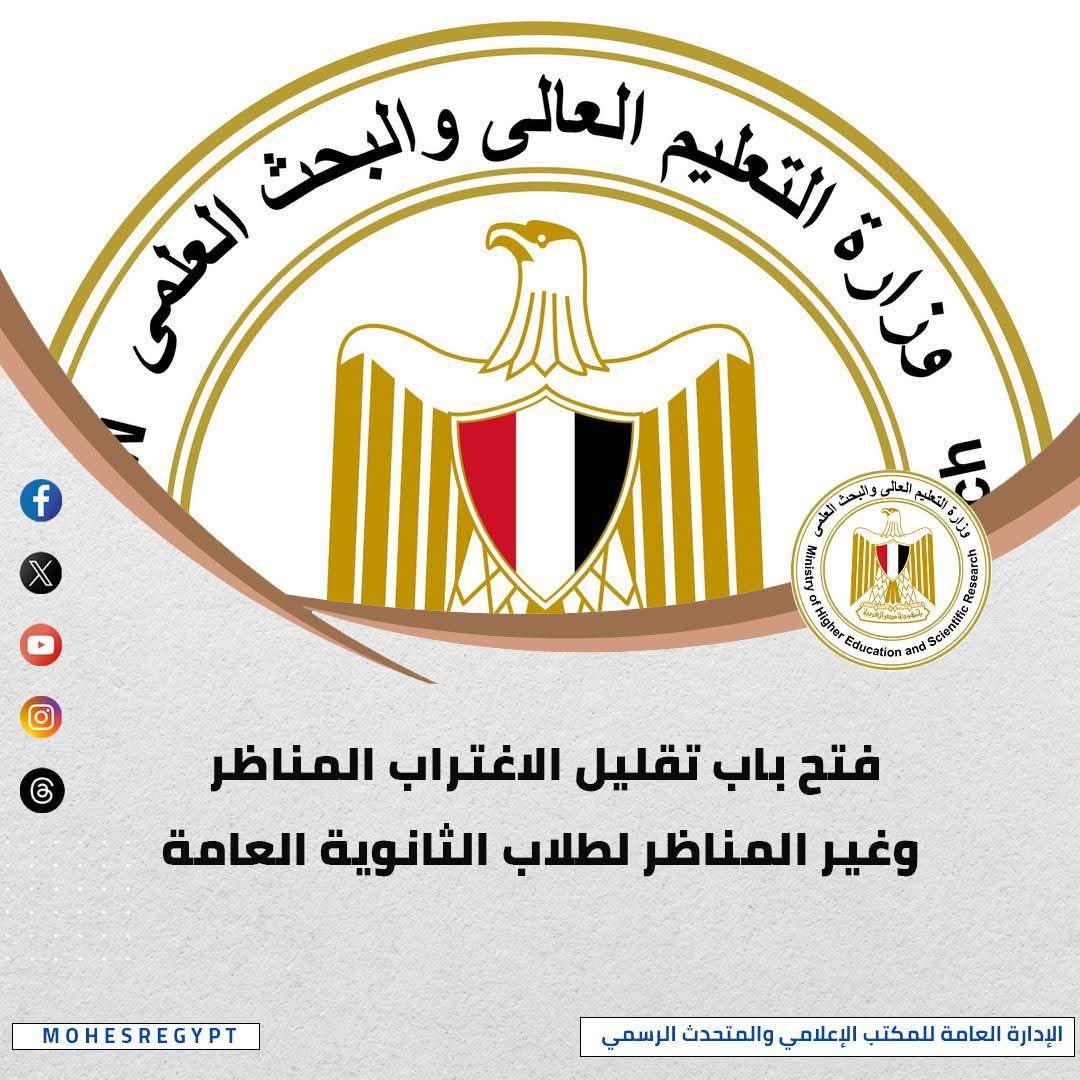 أعلنت وزارة التعليم العالي والبحث العلمي عن فتح باب تقليل الاغتراب (المناظر وغير المناظر) لطلاب الثانوية العامة، خلال الفترة من الخميس 14 أغسطس 2025 وحتى الاثنين 18 أغسطس 2025، وذلك في حدود النسبة المقررة (10%)، ووفقًا للضوابط المعتمدة من المجلس الأعلى للجامعات، وتؤكد الوزارة أن التقديم يتم عبر موقع التنسيق الإلكتروني التالي: