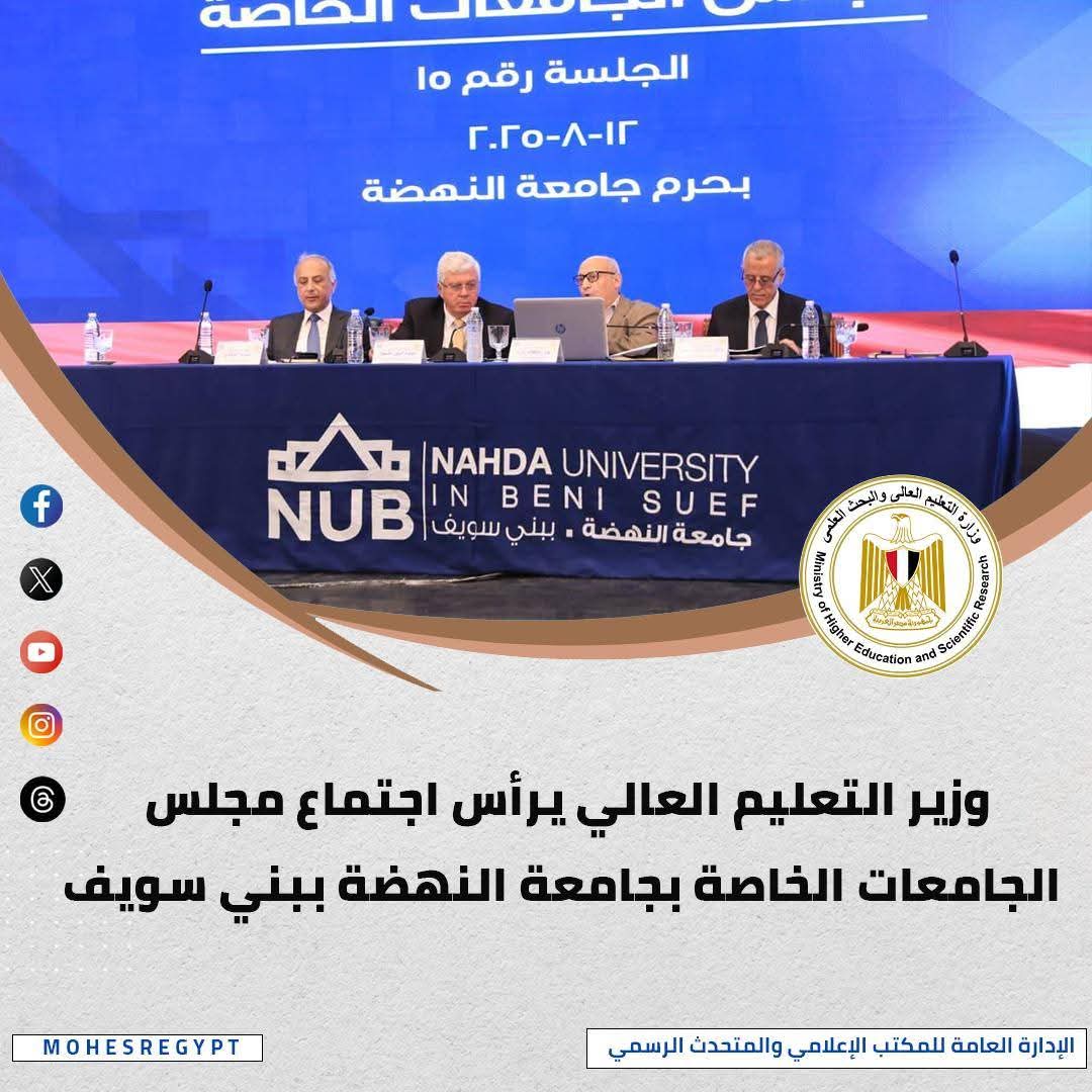 عقد مجلس الجامعات الخاصة اجتماعه الدوري برئاسة د.أيمن عاشور وزير التعليم العالي والبحث العلمي، وخلال الاجتماع وافق المجلس على اعتماد الشهادات المؤمنة لطلاب الجامعات الخاصة، وإنشاء مراكز بيومترية متخصصة لضمان دقة البيانات، وتوثيقها وفق أحدث المعايير التقنية، كما وافق المجلس على إنشاء كلية الحقوق بجامعة اللوتس، كما وافق المجلس على تعديل مسمى كلية الحاسبات وتكنولوجيا المعلومات لتصبح كلية الحاسبات والمعلومات والذكاء الاصطناعي بجامعة اللوتس.