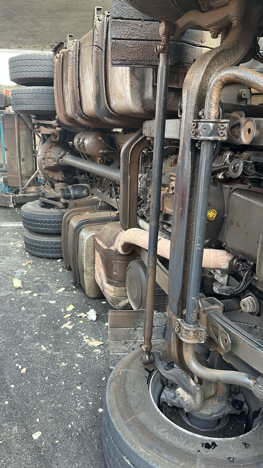 وبالانتقال والفحص ، تبين أنقلاب سياره نقيل ثقيل فارغة الحمولة على جانب الأيسر تحمل تحمل لوحات معدنيه رقم (ج هـ د/ 4912) ولوحات ليبية رقم (46951 - 5ج ) والمقطوره تحمل لوحات معدنيه رقم (ج ج س/ 5726) قياده المدعو" عمر.س.ا" (61)سنه سائق وبصحبته التباع المرافق يدعى" فرج.أ" (63)سنه وتم أستخراج السائق والتباع من الكابينه بمعرفة القوات بحاله جيده بدون أصابات ولا يوجد أشخاص محتجزين أو مصابين أو انسكابات بترولية على الطريق، وجارى رفع السياره بواسطة لودر، وتم اتخاذ الإجراءات القانونية اللازمة تجاه الواقعة.