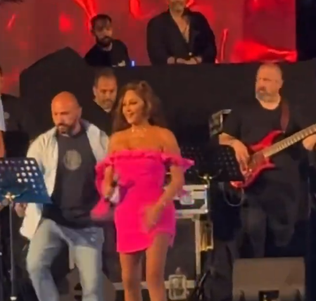 وكادت إليسا أن تقع على المسرح خلال إحياء حفلها، ولكنها سرعان ما أنقذت الموقف، وارتدت إليسا فستان قصير من اللون الوردي استطاعت من خلاله أن تخطف أنظار جمهورها ومحبيها.