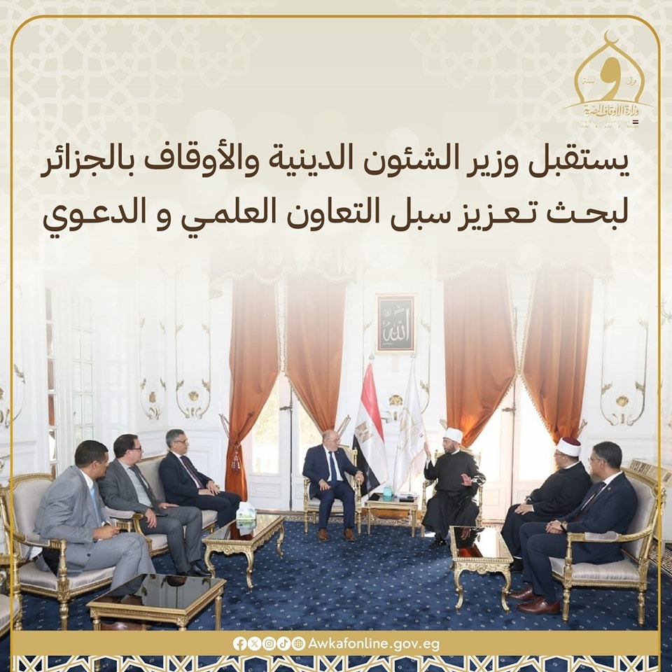 وزير الأوقاف يستقبل وزير الشئون الدينية والأوقاف بالجزائر