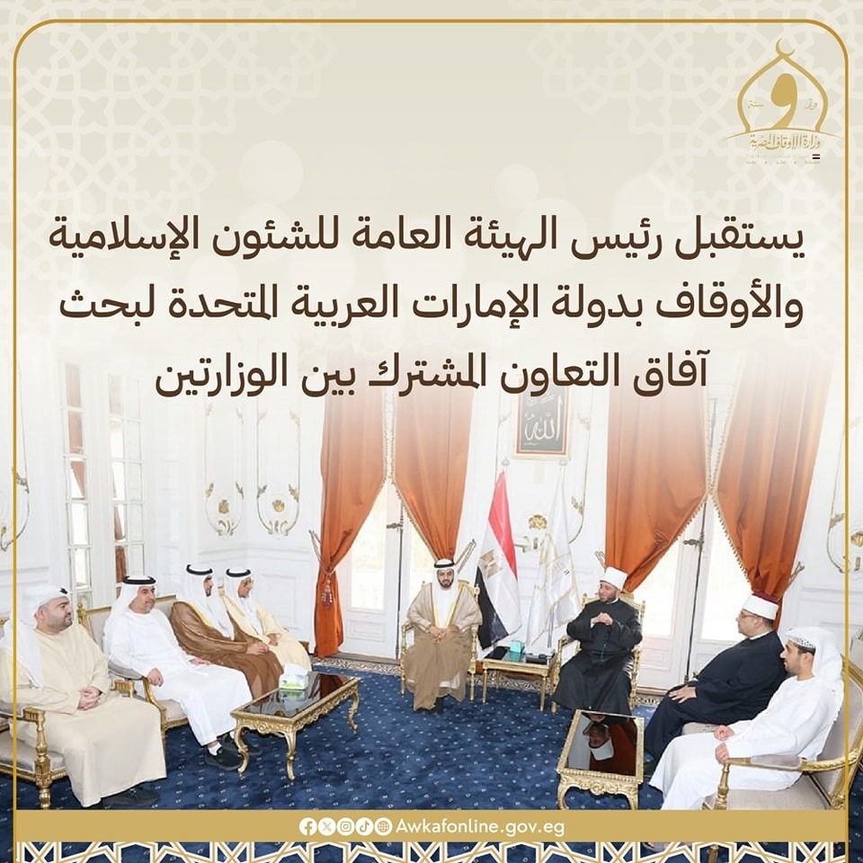 وزير الأوقاف يستقبل رئيس الهيئة العامة للشئون الإسلامية والأوقاف بدولة الإمارات العربية المتحدة