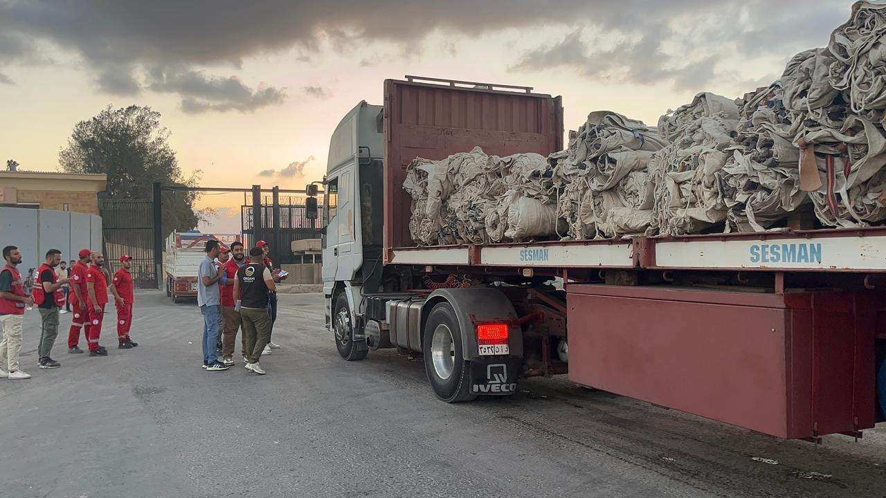 الهلال الأحمر المصري يدفع بـ2300 طن مساعدات غذائية وطبية وخيام إلى غزة