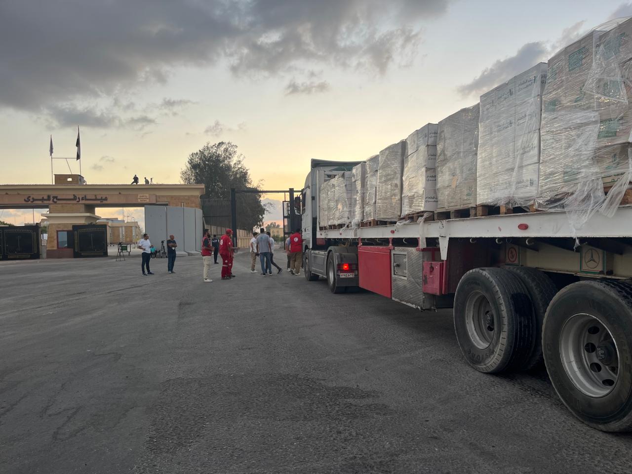 ويتواجد الهلال الأحمر المصري كآلية وطنية لتنسيق وتفويج المساعدات إلى غزة، على الحدود منذ بدء الأزمة حيث لم يتم غلق معبر رفح من الجانب المصري نهائيًا، وواصل تأهبه فى كافة المراكز اللوجستية وجهوده المتواصلة لدخول المساعدات التي بلغت أكثر من 36 ألف شاحنة محملة بنحو نصف مليون طن من المساعدات الإنسانية و الإغاثة، وذلك بجهود 35 ألف متطوع بالجمعية.