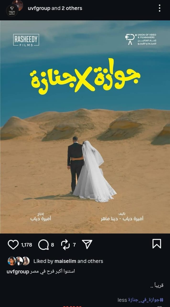 ونشرت الشركة المنتجة البوستر من خلال حسابها الرسمي عبر موقع تبادل الصور والفيديوهات القصيرة "إنستجرام"، وعلقت: "استنوا أكبر فرح في مصر.. قريبًا جوازة في جنازة".