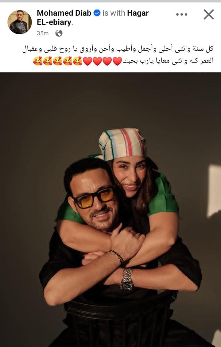 "كل سنة وانتي أحن وأروق".. دياب يهنئ زوجته بعيد ميلادها بكلمات رومانسية|صورة