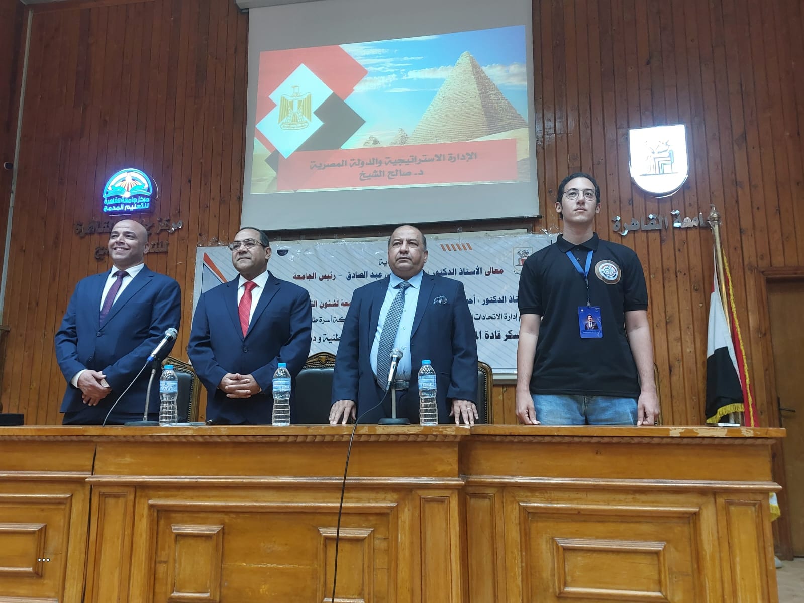 اختتم معسكر قادة المستقبل بجامعة القاهرة، فعاليات الفوج الثالث، برعاية د.محمد سامى عبدالصادق رئيس الجامعة، وإشراف وحضور د.أحمد رجب نائب رئيس الجامعة لشئون التعليم والطلاب، بمسرح التعليم المدمج بالجامعة القاهرة، بمحاضره ألقاها الدكتور صالح الشيخ رئيس الجهاز المركزي للتنظيم والإدارة السابق ومستشار جامعة القاهرة للحوكمة والتطوير المؤسسي، والاستاذ بكلية الاقتصاد والعلوم السياسية بجامعة القاهرة، بعنوان: "الإدارة الاستراتيجية والدولية المصرية".