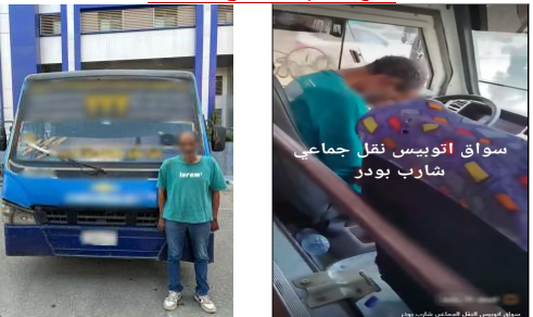 كشف ملابسات مقطع فيديو تم تداوله بمواقع التواصل الإجتماعى يظهر خلاله سائق أتوبيس "نقل جماعى" غير متزن وتبدو عليه آثار تعاطى المواد المخدرة حال سيره بمنطقة المطرية بالقاهرة، مما يعرض حياة المواطنين للخطر.