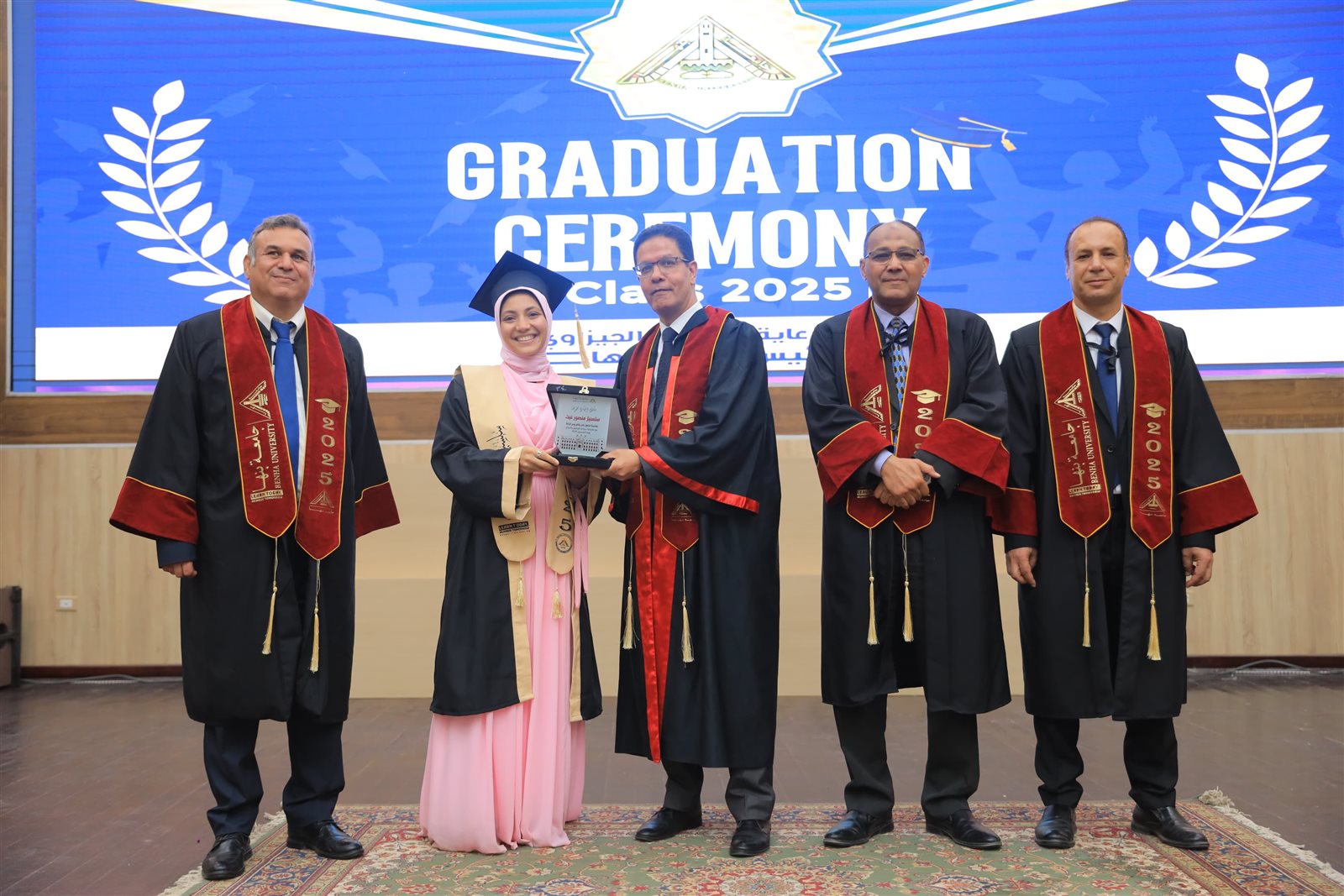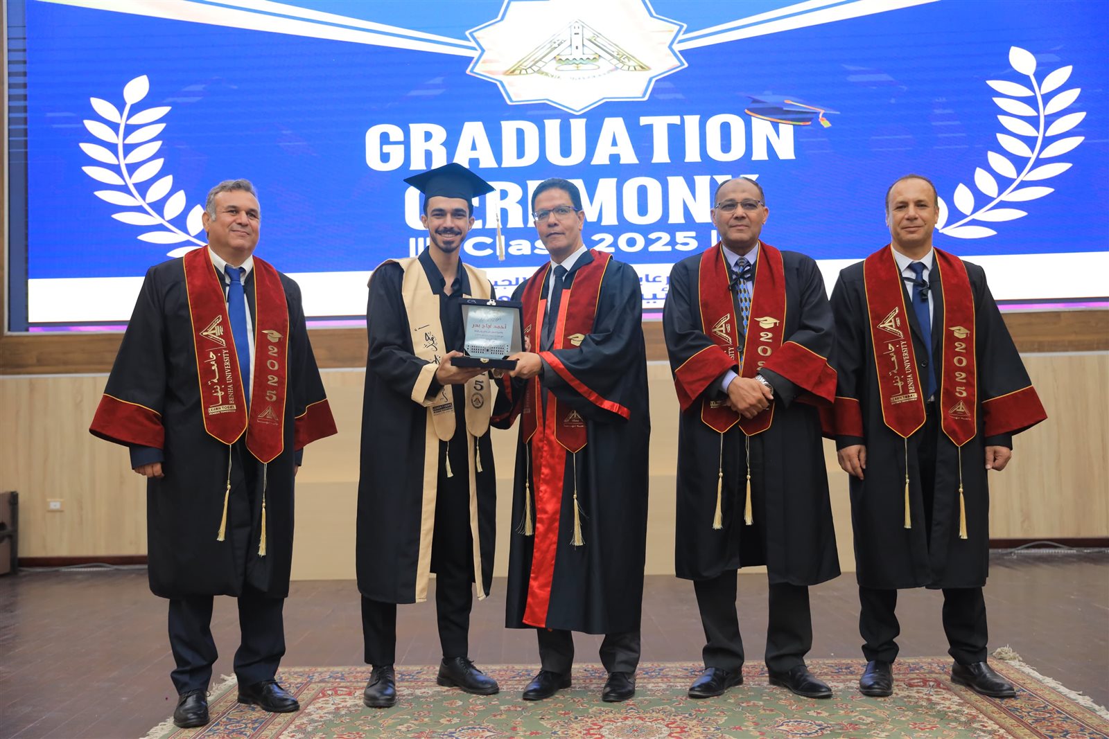 وشهدت الاحتفالية تكريم الطلاب وتوزيع دروع التخرج عليهم.