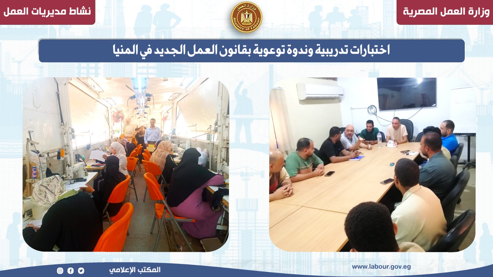 9-اختبارات تدريبية وندوة توعوية بقانون العمل الجديد في المنيا