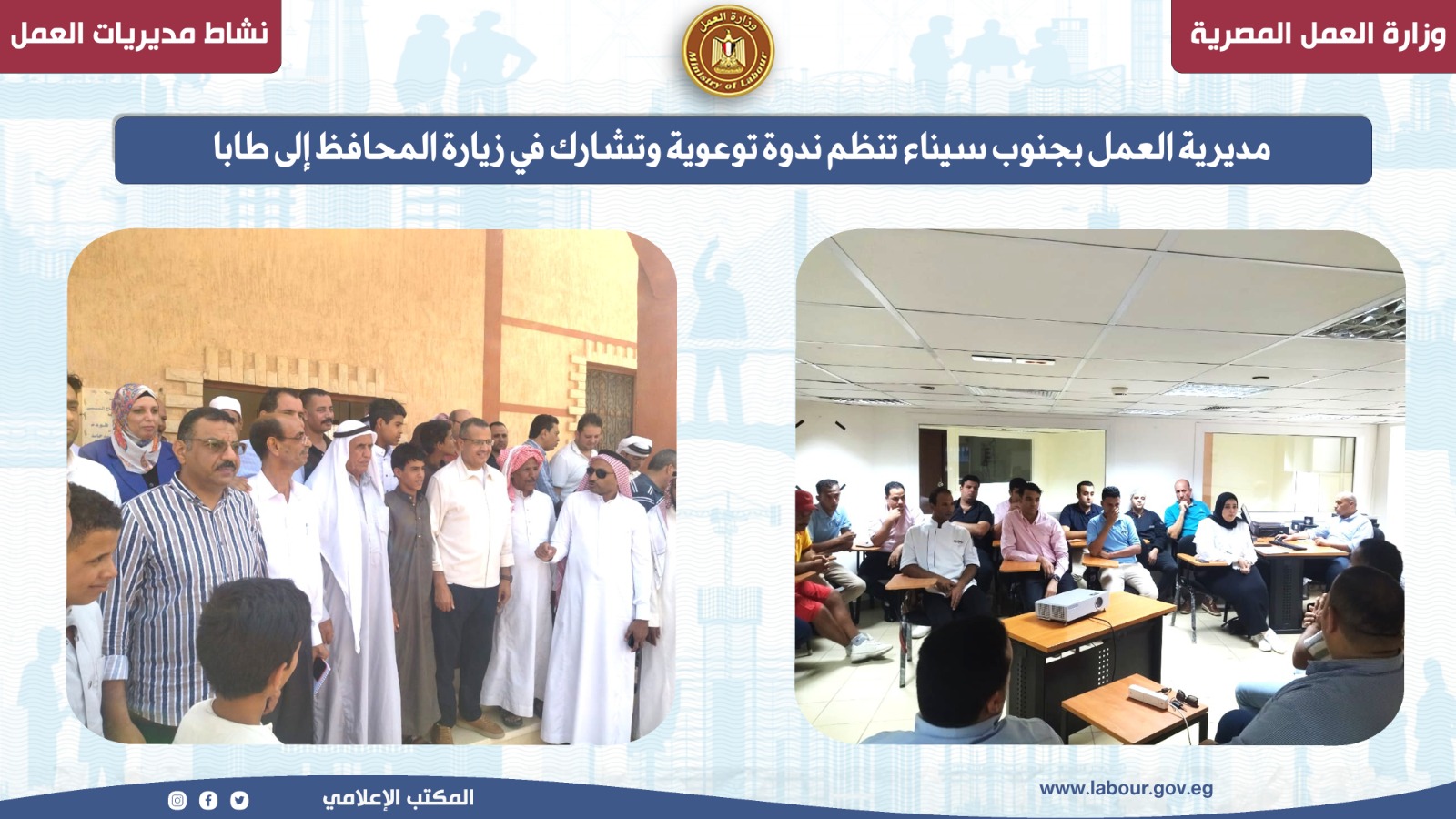 7-مديرية العمل بجنوب سيناء تنظم ندوة توعوية وتشارك في زيارة المحافظ إلى طابا
