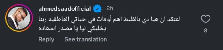ورد أحمد سعد على رسالة زوجته برسالة رومانسية، وقال: "اعتقد ان هيا دي بالظبط اهم أوقات في حياتي العاطفية ربنا يخليكي ليا يا مصدر السعادة".