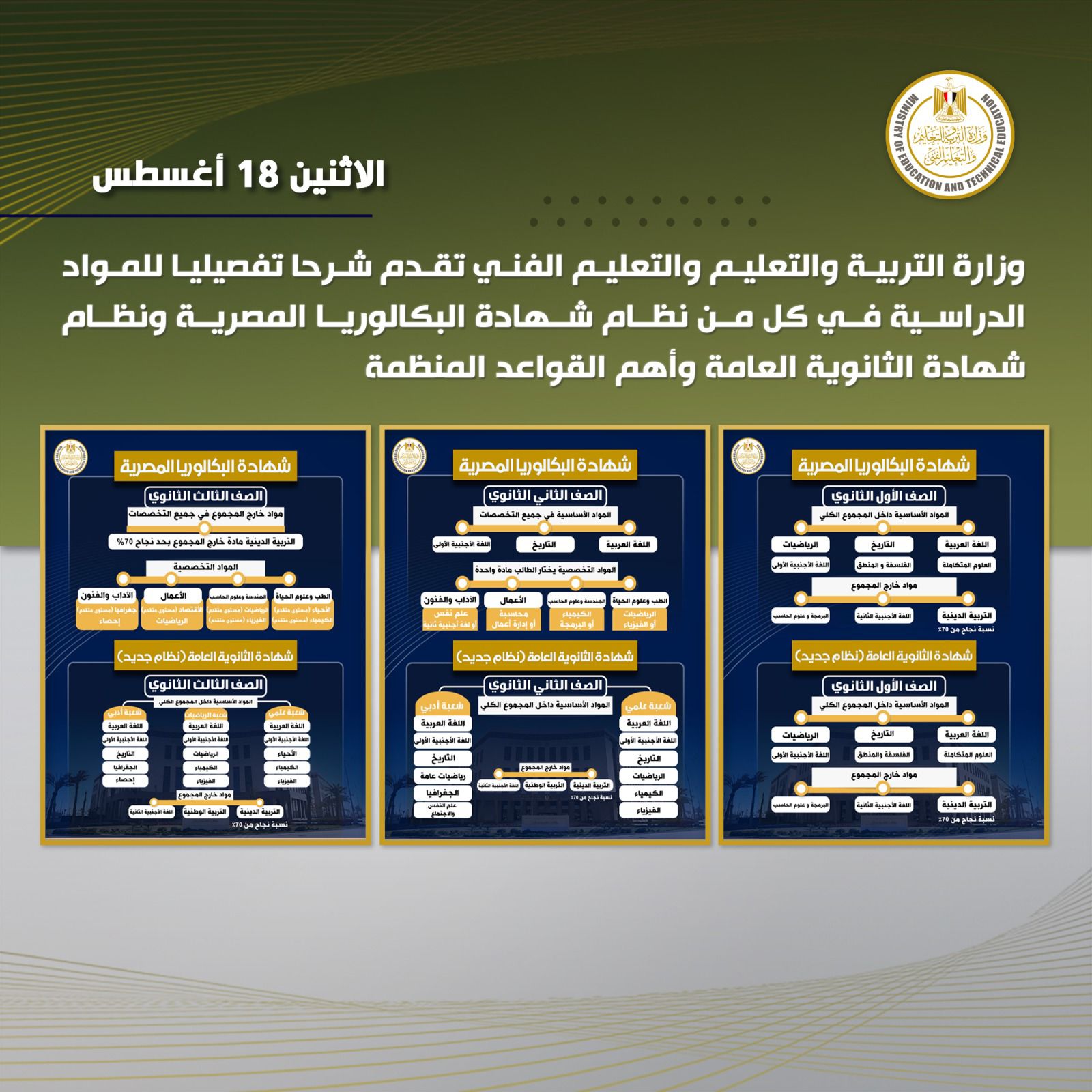 تقدم وزارة التربية والتعليم والتعليم الفني شرحا تفصيليا للمواد الدراسية في كل من نظام شهادة البكالوريا المصرية ونظام شهادة الثانوية العامة وأهم القواعد المنظمة، وذلك في إطار حرصها المتواصل على توعية أولياء الأمور والطلاب بتفاصيل كل نظام.