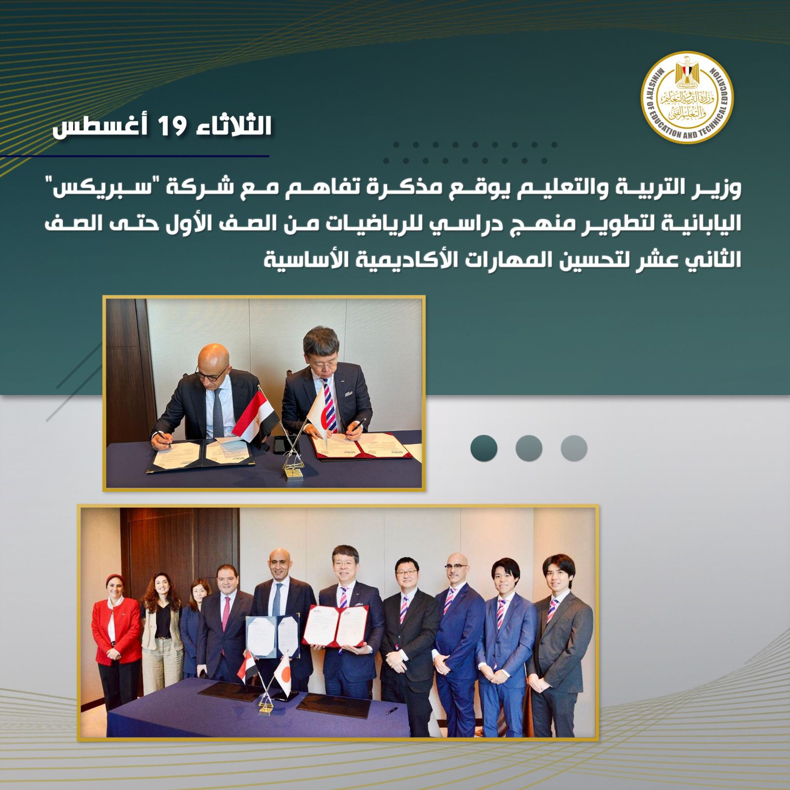 وقع السيد محمد عبد اللطيف وزير التربية والتعليم والتعليم الفني مذكرة تفاهم مع شركة "سبريكس" اليابانية بهدف تطوير منهج دراسي للرياضيات من الصف الأول حتى الصف الثاني عشر لتحسين المهارات الأكاديمية الأساسية بالرجوع إلى المنهج الياباني.