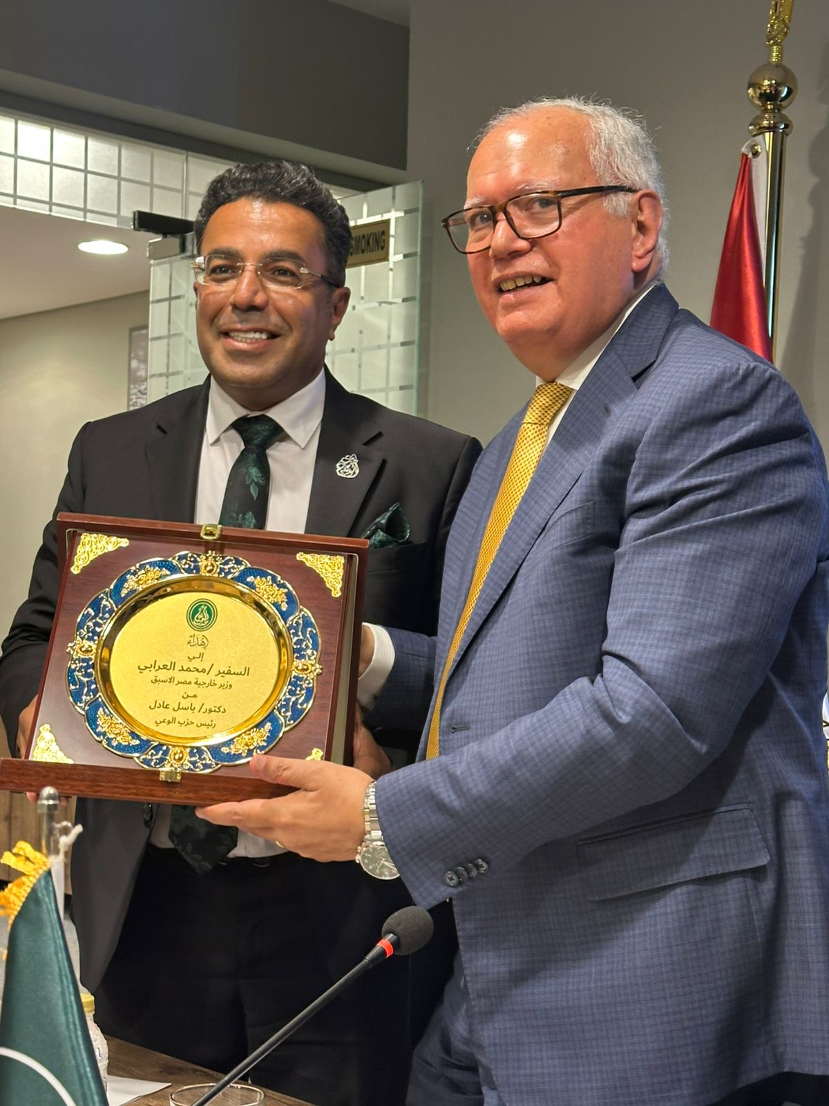 استضاف حزب الوعي برئاسة دكتور باسل عادل وزير الخارجية الأسبق السفير محمد العرابي لمناقشة النظام العالمي والوضع الاقليمي وتأثيرهما علي السياسة الخارجية المصرية في جلسة نقاشية أدارها الكاتب الصحفي حازم الملاح رئيس لجنة الصحافة والاتصال