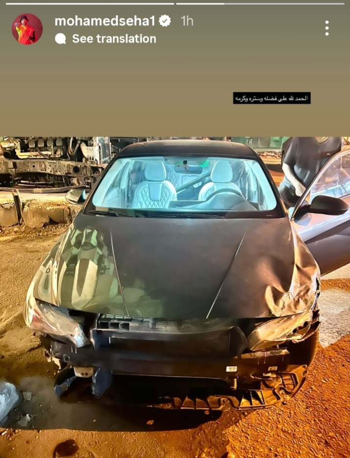 ونشر النجم سيحا، حارس مرمى النادي الأهلي عبر حسابه الرسمي على "إنستجرام" صورة لسيارته والتي ظهر بها أضرار كبيرة.