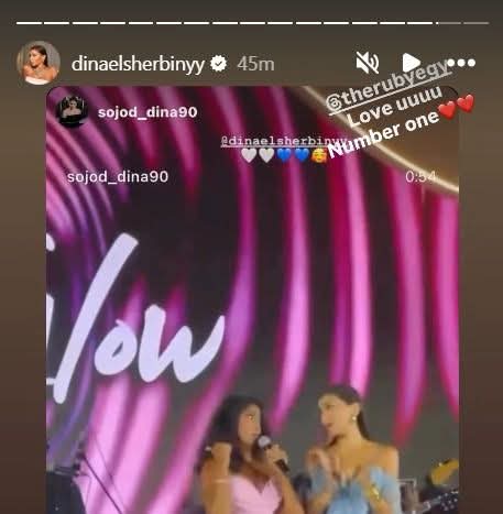 ووجهت دينا الشربيني رسالة لـ روبي بعد الحفل، من خلال حسابها الرسمي عبر موقع تبادل الصور والفيديوهات القصيرة "إنستجرام"، عبر خاصية استوري، قالت:"بحبك.. نمبر 1".