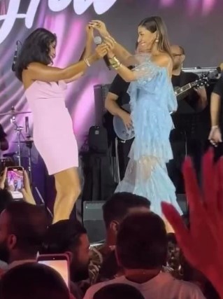 استطاعت الفنانة دينا الشربيني أن تخطف الأنظار أثناء حضورها حفل روبي في العلمين الجديدة، وذلك بعد صعودها على المسرح، حيث قامت بغناء أغنية مع السلامة باي باي برفقة روبي، وسط أجواء مليئة بالفرحة والبهجة.