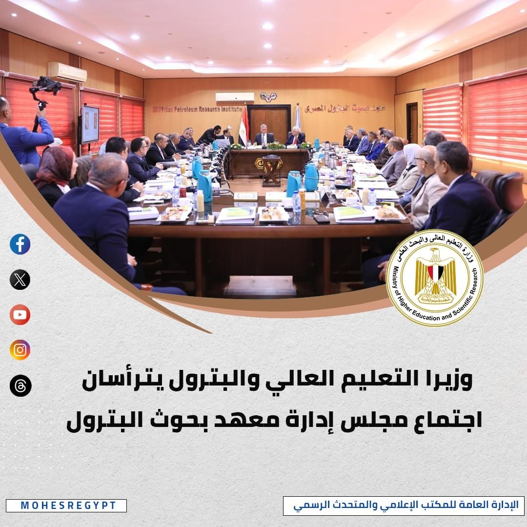 عقد معهد بحوث البترول اجتماع مجلس الإدارة برئاسة المهندس كريم بدوي وزير البترول والثروة المعدنية ورئيس مجلس إدارة المعهد، والدكتور أيمن عاشور وزير التعليم العالي والبحث العلمي، وشهد الاجتماع استعراضًا لجهود معهد بحوث البترول منذ نشأته في عام 1974، حيث يعمل المعهد على ربط الأبحاث العلمية بالصناعة ومواجهة التحديات التي تواجه النمو الاقتصادي، ويضم المعهد 7 أقسام، و8 مراكز خدمية، و3 وحدات ذات طابع خاص، ويعمل على تطوير الكيماويات وإنتاج بدائل محلية الصنع بدلاً من المستوردة، كما يمتلك المعهد 3 مفاعلات لإنتاج الكيماويات بطاقة إنتاجية تبلغ 35 طنًا يوميًا.