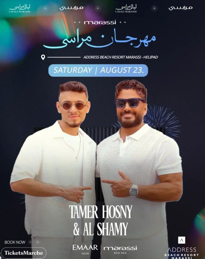 يستعد النجم تامر حسني، والنجم الشامي، لإحياء حفل جماهيري ضخم استثنائي الليلة، بمهرجان مراسي "ليالي مراسي"، برعاية مراسي البحر الأحمر.