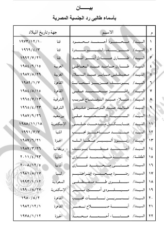 حصول 21 شخصا على جنسيات أجنبية.. (كشوفات بالأسماء)