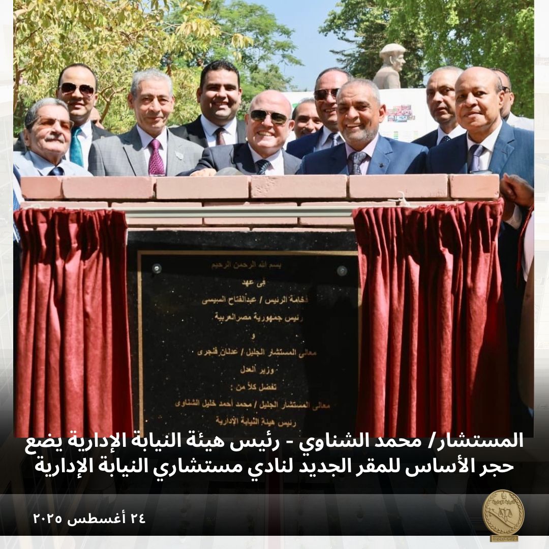 وضع المستشار محمد الشناوي ـ رئيس هيئة النيابة الإدارية، صباح اليوم الأحد الموافق ٢٤ / ٨ / ٢٠٢٥، حجر الأساس لنادي مستشاري النيابة الإدارية الجديد الكائن بشارع عبد العزيز آل سعود بالمنيل.