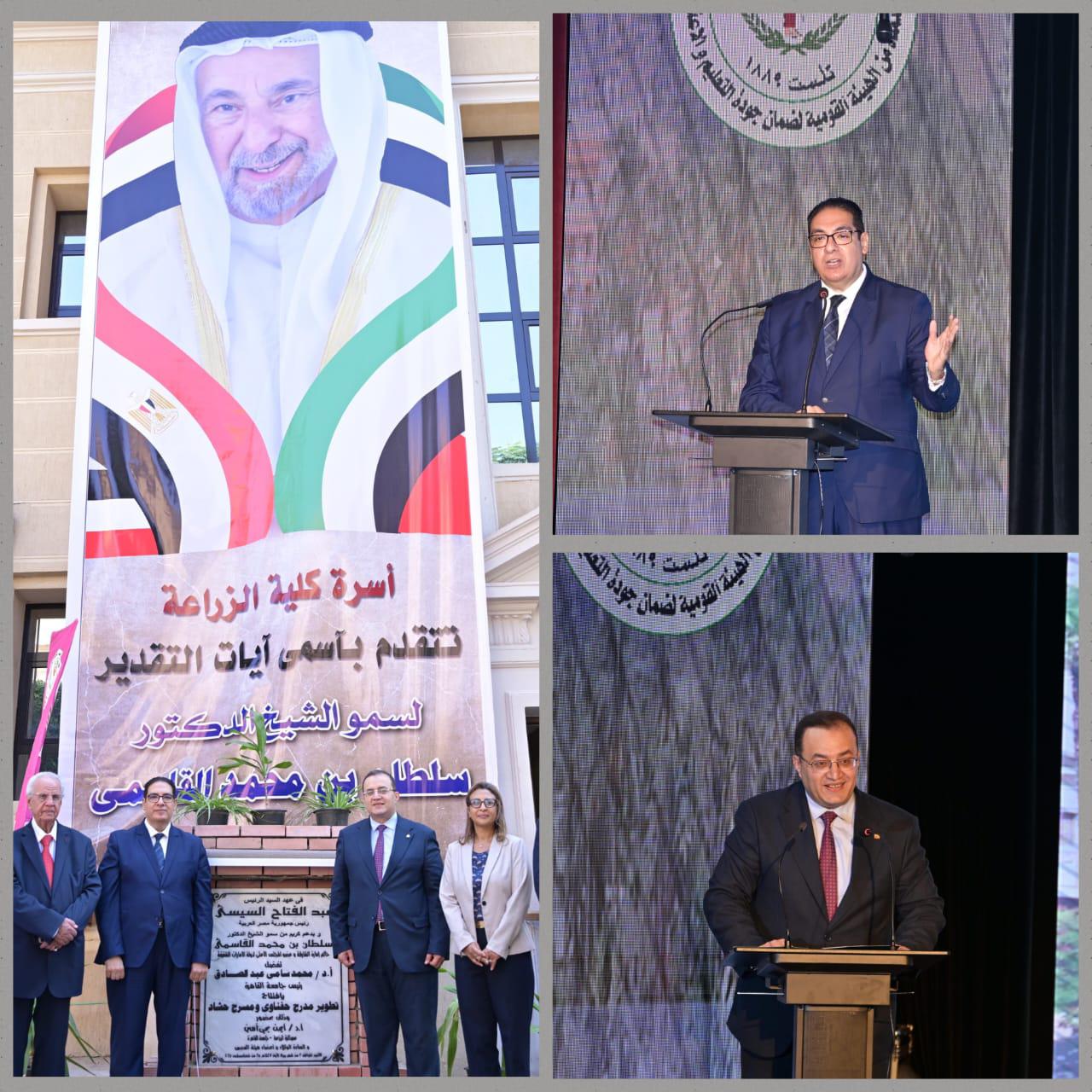 رئيس جامعة القاهرة يفتتح أعمال تطوير مسرح ومدرج كلية الزراعة بدعم من الشيخ سلطان القاسمي