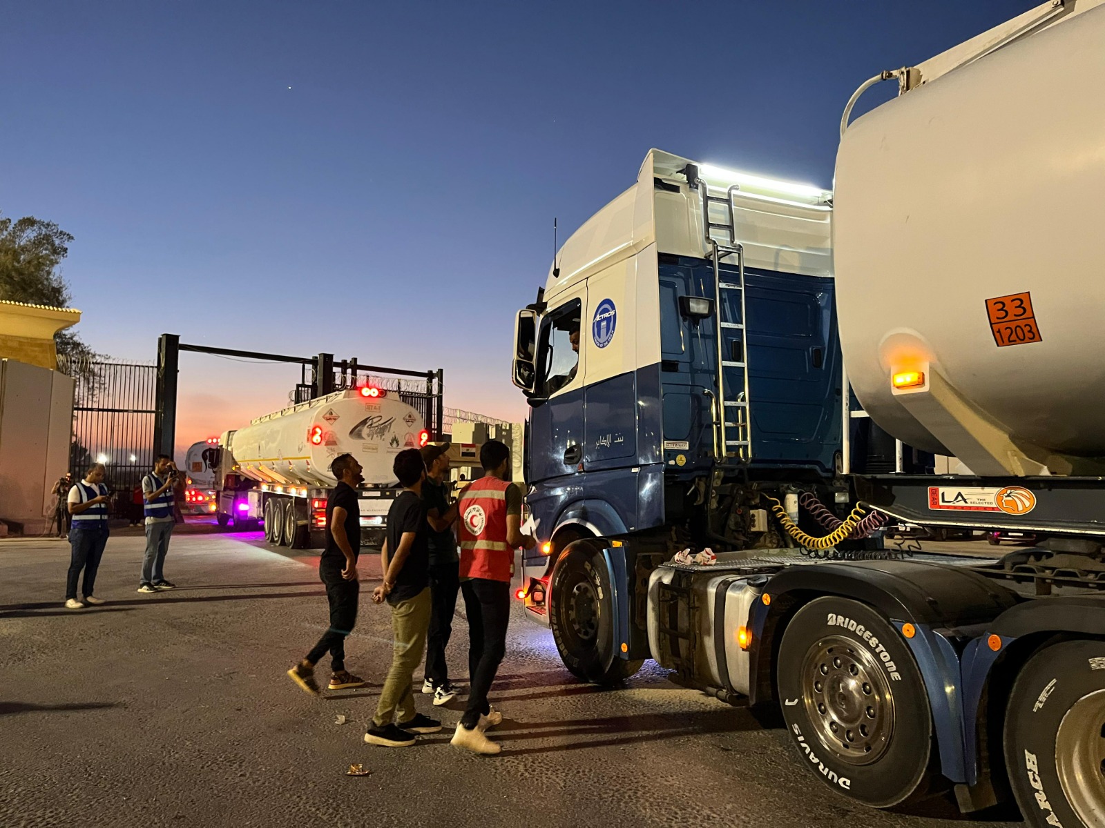 ويتواجد الهلال الأحمر المصري كآلية وطنية لتنسيق وتفويج المساعدات إلى غزة، على الحدود منذ بدء الأزمة حيث لم يتم غلق معبر رفح من الجانب المصري نهائيًا، وواصل تأهبه فى كافة المراكز اللوجستية وجهوده المتواصلة لدخول المساعدات التي بلغت أكثر من نصف مليون طن من المساعدات الإنسانية و الإغاثة، وذلك بجهود 35 ألف متطوع بالجمعية