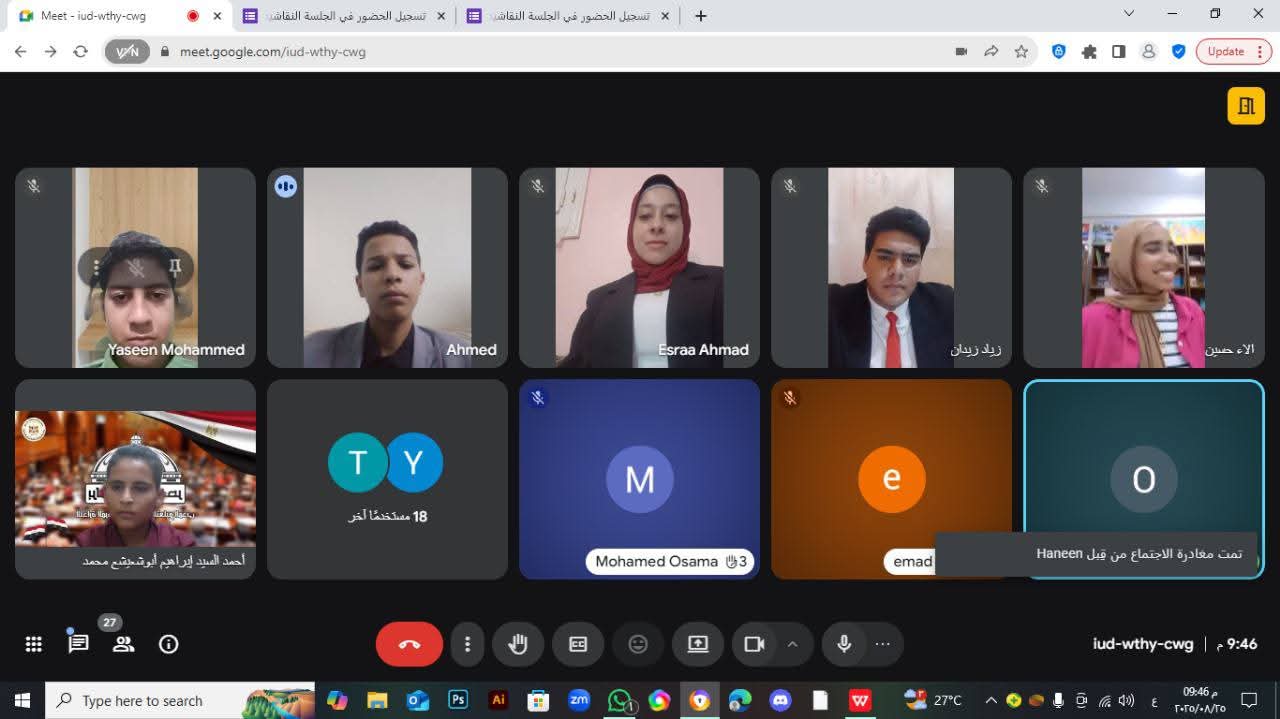 وشهدت الجلسة حضور هيئة مكتب برلمان طلائع مصر ولجانه النوعية، وسط مشاركة متميزة من الطلائع في النقاشات وطرح التوصيات.