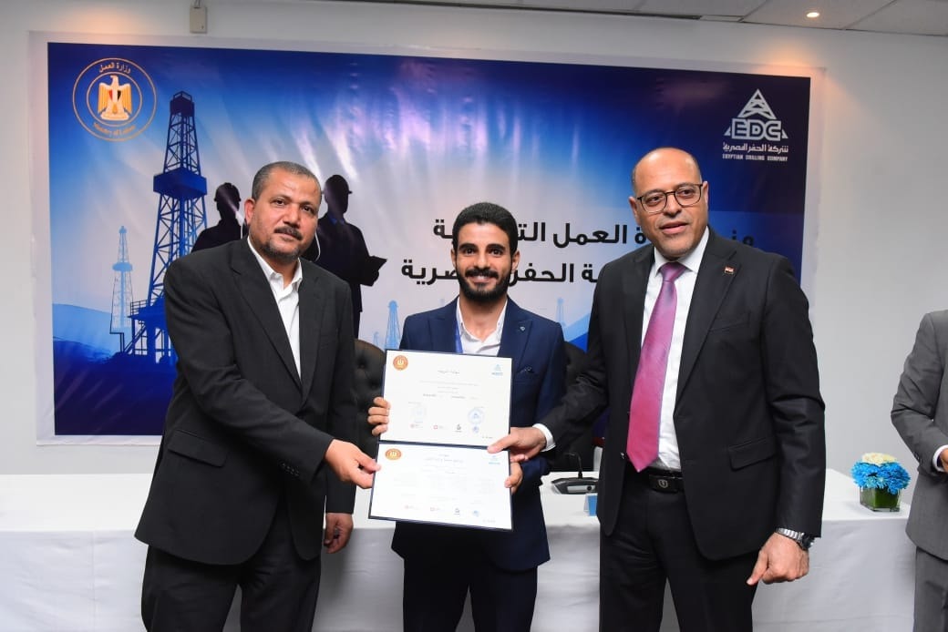 سلّم وزير العمل محمد جبران ، اليوم الثلاثاء، 97 شهادة تدريب كدفعة جديدة، للخريجين الذين حصلوا على منحة مجانية من الوزارة ، للتدريب في مجالات الخدمات البترولية ، داخل مركز تدريب شركة الحفر المصرية، الذي يُقدم برامج ودورات وفقًا لأحدث المعايير الدولية،وكان في استقباله، رئيس مجلس إدارة الشركة المهندس أسامة كامل،وبحضور المهندس أحمد مصطفى، مستشار وزير العمل للتطبيقات والنظم التكنولوجية .